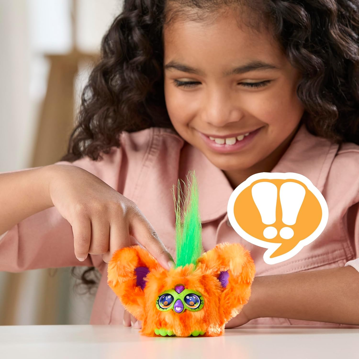 Poznaj tego małego, szalonego przyjaciela! To nie jest zwykły interaktywny zwierzak, ani pluszowa zabawka. To miniaturowa zabawka Furby, która śpiewa i zawsze podąża za swoim najlepszym przyjacielem! Furbiś Boo-Kin ma mięciutkie, pomarańczowe futerko i wyglądem przypomina uroczą Halloweenową dynię!