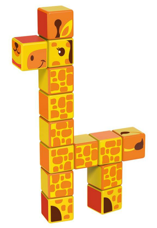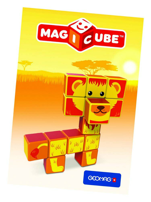 Geomag Magicube Zestaw Safari 14 el. 135 to Klocki produkowane w Szwajcarii co jest gwarancją solidnego wykonania. Na tle innych klocków magnetycznych wyróżnia je także siła magnesu, co zapewnia łatwość łączenia elementów i wytrzymałość budowanych konstrukcji. To kostki dedykowane najmłodszym dzieciom. Z magnetycznych kostek można ułożyć 4 zwierzątka zamieszkujące Afrykę, to świetna zabawa wspierającą rozwój motoryczny a do tego świetnie pobudza wyobraźnię.