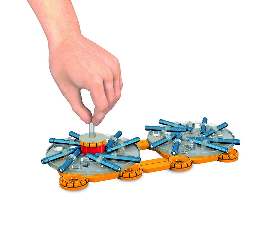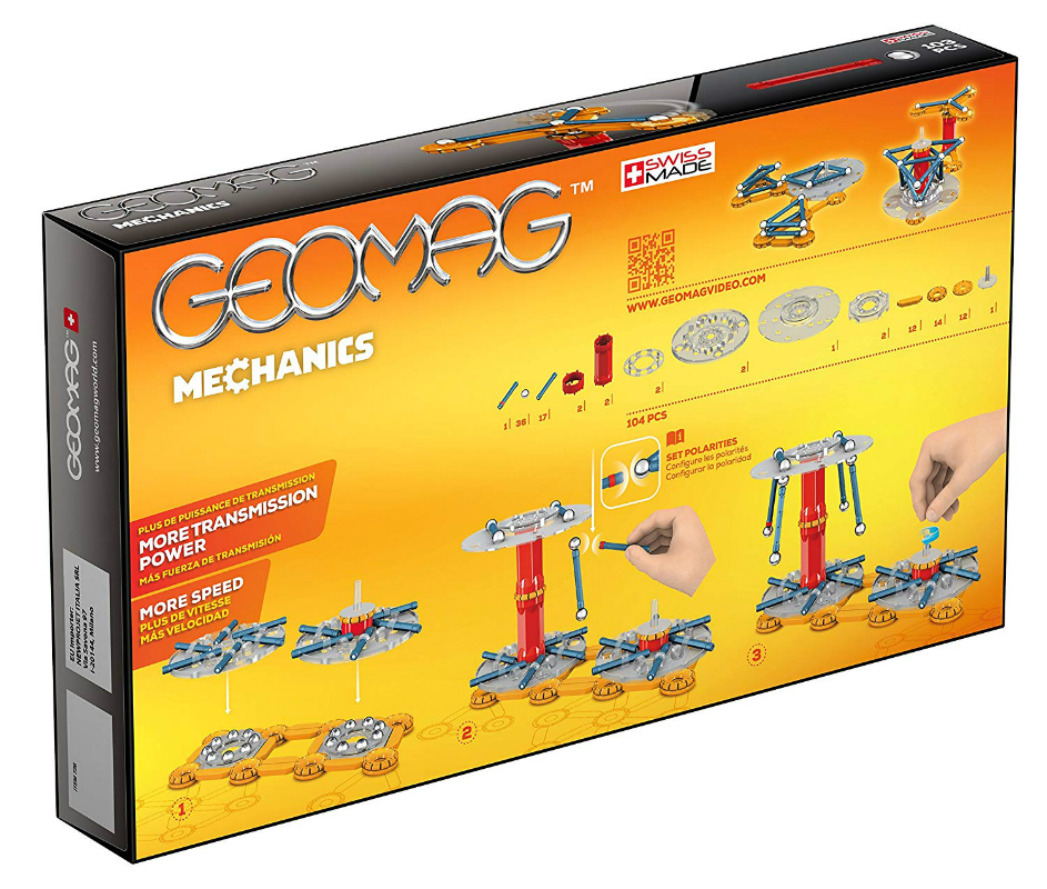 Geomag Seria Mechanics 103 el. 726 to Klocki produkowane w Szwajcarii co jest gwarancją solidnego wykonania . Na tle innych klocków magnetycznych wyróżnia je także siła magnesu co zapewnia łatwość łączenia elementów i wytrzymałość budowanych konstrukcji, nawet przy ich dużych rozmiarach. Zestaw składa się z niklowanych kulek przeznaczonych do łączenia ze sobą magnetycznych pałeczek, które zostały zaprojektowane w taki sposób, aby dawały możliwość budowania trójwymiarowych struktur, których elementy można wprawiać w ruch. Kolekcja została stworzona z myślą o wszystkich, pragnących odkrywać tajemnice konstruowania maszyn, dźwigni i modeli, które można obracać, napędzać i przesuwać. Podczas zabawy poznać można zasady działania sił magnetycznych i mechanicznych. To doskonały sposób na rodzinną zabawę, dzięki której rozwija się kreatywność, umiejętność pracy w grupie i zmysł przestrzenny, jest to również świetny sposób na trening zdolności manualnych.
