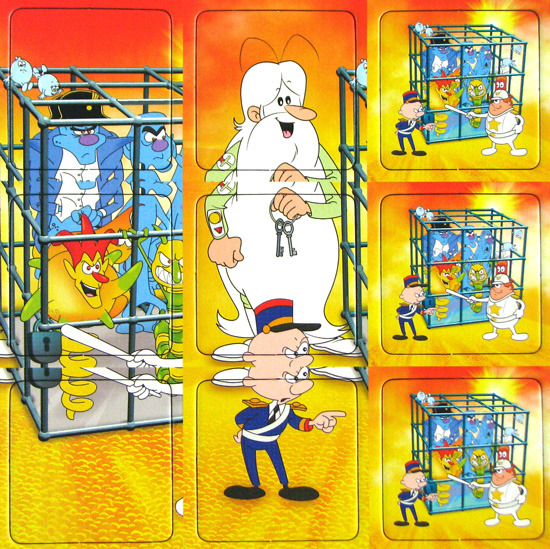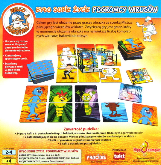 Celem gry jest ułożenie przez graczy obrazka ze scenką Mistrza pilnującego więźniów w klatce. Zwycięzcą gry jest gracz, który w momencie ułożenia obrazka ma największą liczbę kompletnych wirusów, bakterii lub toksyn. Zestaw zawiera duże, wytrzymałe kartoniki, przystosowane do małych rączek. Gra uczy rozpoznawać i kojarzyć pasujące do siebie elementy obrazków, kształtuje spostrzegawczość, a także pomaga stawiać pierwsze kroki w grze wieloosobowej.
