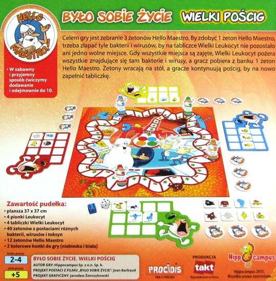 Celem gry jest zebranie trzech żetonów Hello Maestro. By zdobyć jeden żeton, trzeba złapać tyle bakterii i wirusów, by na tabliczce Wielki Leukocyt nie pozostało ani jedno wolne miejsce. Gdy wszystkie miejsca są zajęte, Wielki Leukocyt pożera wszystkie znajdujące się tam bakterie i wirusy, a gracz pobiera z banku jeden żeton Hello Maestro. Żetony wracają na stół, a gracze kontynuują pościg, by na nowo zapełnić tabliczkę. W zabawny i przyjemny sposób ćwiczymy dodawanie i odejmownie do 10. Uratuj organizm przed zarazkami i posiądź matematyczną wiedzę.