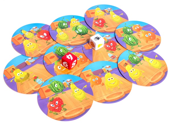 Najmłodszy z graczy rozpoczyna grę, rzucając obiema kośćmi. Wynik na kościach wskazują liczbę i rodzaj owoców z których musimy skomponować swoją sałatkę owocową. Odkrywa również pierwszą kartę ze swojej talii i umieszcza ją odkrytą na środku stołu, rozpoczynając stosik nazywany miską na owoce.