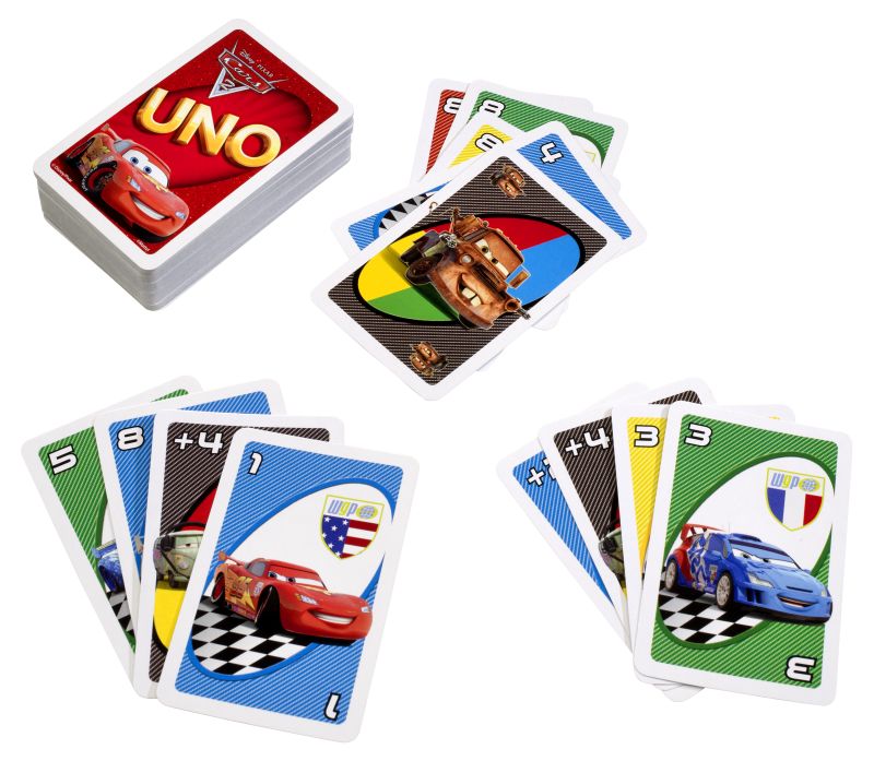 Zapnij pasy i ruszaj do wyścigu z rodziną i przyjaciółmi! Dodatkową atrakcją dla najmłodszych uczestników są karty zdobione motywem z ulubionymi bohaterami filmu animowanego Auta 2. Uno Cars 2 to świetny sposób na spędzenie wolnego czasu ze znajomymi i rodziną.