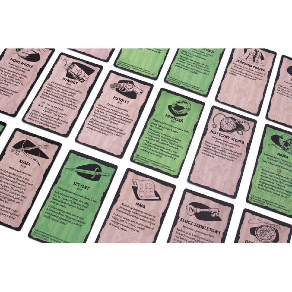 - Podczas eksploracji gracze dobierają karty zdarzeń, przedmiotów oraz omenów, które wpływają na przebieg gry.