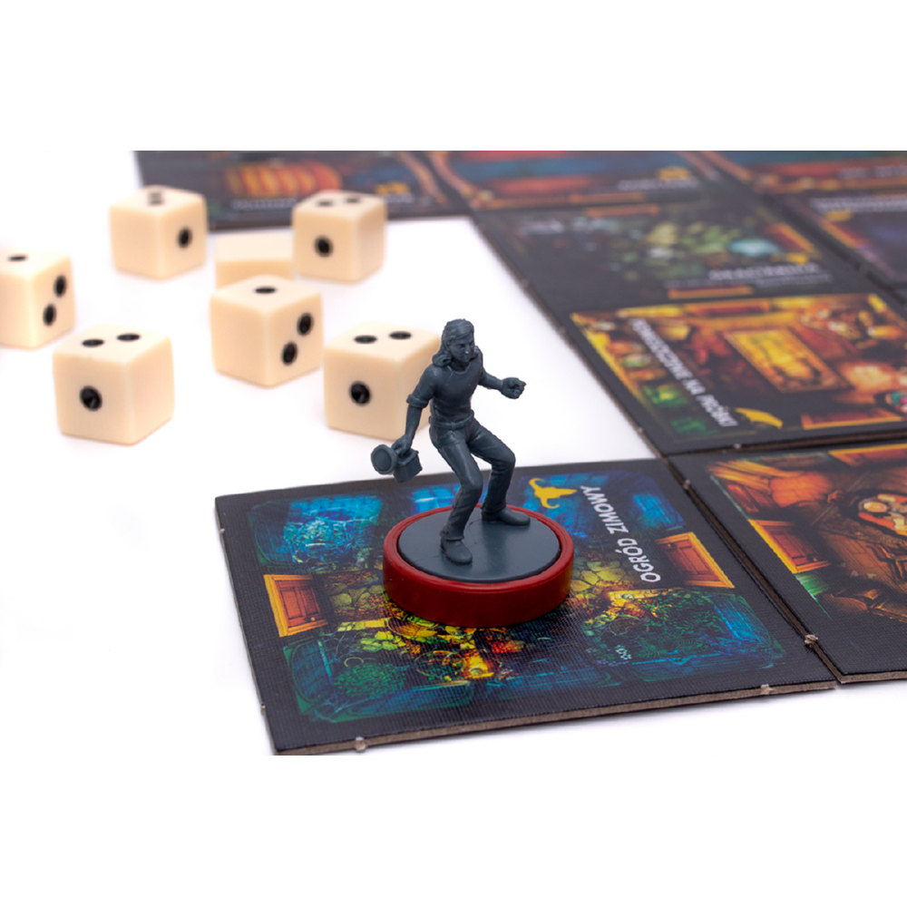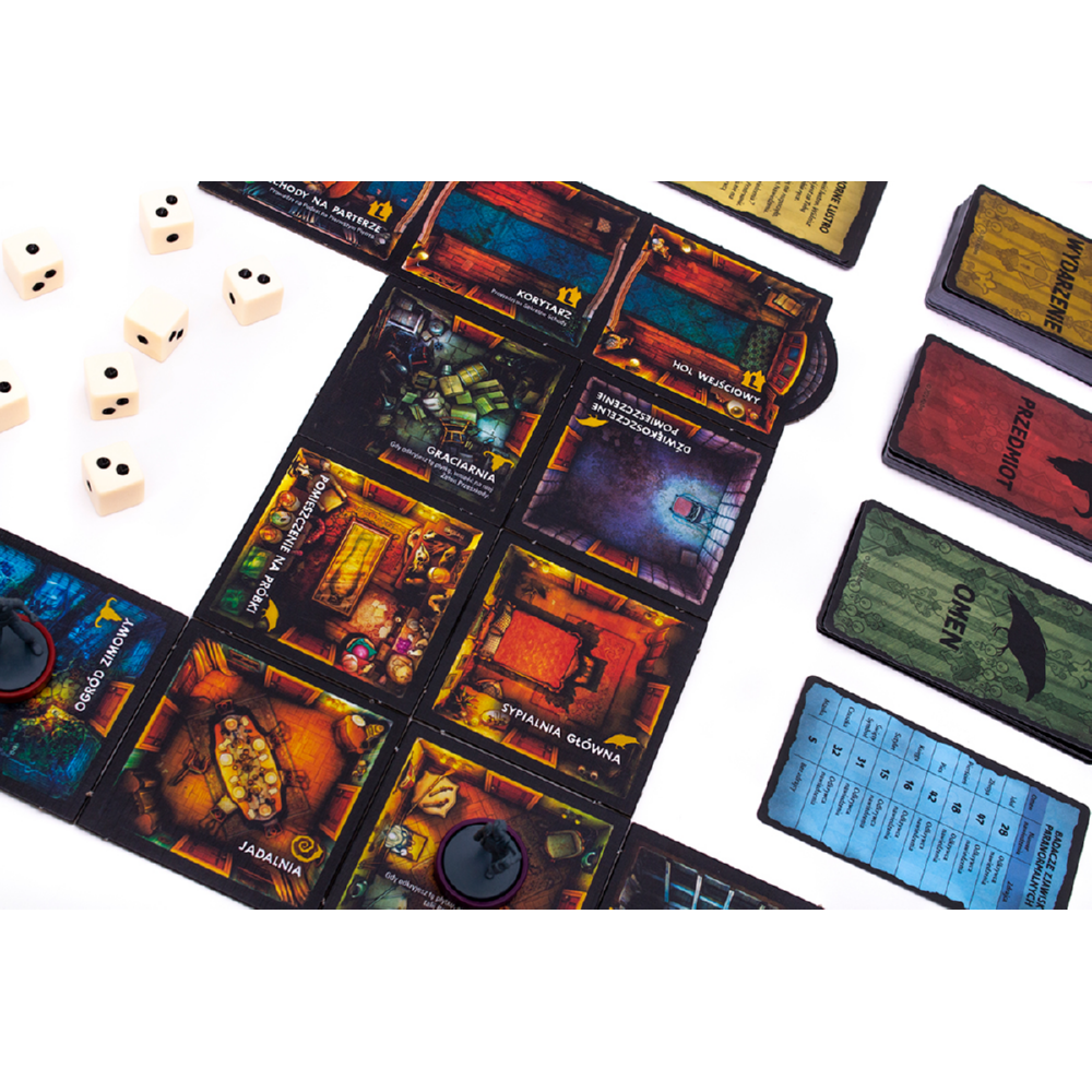 - dynamiczna eksploracja domu – budowanie planszy w trakcie gry sprawia, że każda partia wygląda inaczej i wymaga innej strategii,
