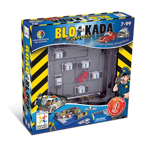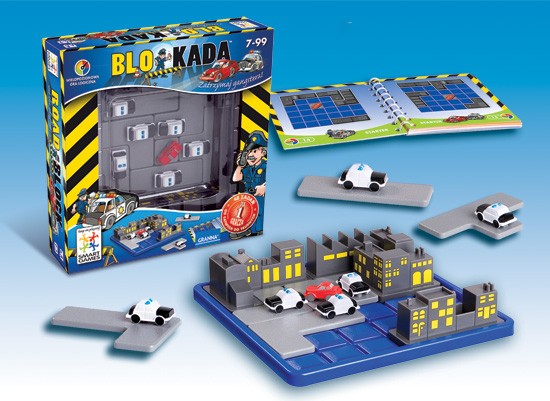 Blokada to wielopoziomowa gra logiczna. Różny poziom trudności zadań sprawia, że mogą je rozwiązywać zarówno dorośli, jak i dzieci. Prawdziwe wyzwanie dla miłośników ćwiczenia umysłu! Zbieg ucieka czerwonym samochodem. Należy go otoczyć i odciąć wszelkie możliwe drogi ucieczki. Jako szef policji odpowiadasz za ujęcie zbiega. Gra rozwija logiczne myślenie, planowanie strategiczne, spostrzegawczość i wyobraźnią przestrzenną.