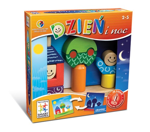 Smart Games to seria gier logicznych doskonałych dla najmłodszych, jak również dla dorosłych. Rozwijają myślenie logiczne, procesy poznawcze, spostrzeganie wzrokowe oraz wyobraźnię przestrzenną, a przy tym są wspaniałą rozrywką dla całej rodziny. Co przyniesie kolejny dzień, a co wydarzy się w nocy? Podpowiedzą Ci piękne kolorowe figurki. Gra została opracowana specjalnie dla dzieci, u których kształtuje się właśnie koordynacja wzrokowo-ruchowa. W pudełku znajdują się pięknie lakierowane drewniane elementy i książeczka z zadaniami. Tak, jak po dniu następuje noc, tak zadania dzienne zapewniają doskonały początek, który stopniowo przygotowuje dzieci do bardziej zaawansowanych zadań nocnych. Świetnie wpływa na rozwój drobnych sprawności motorycznych oraz percepcji wzrokowej kształtów i kolorów.