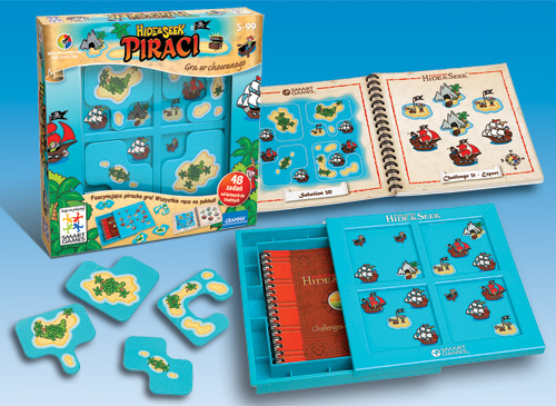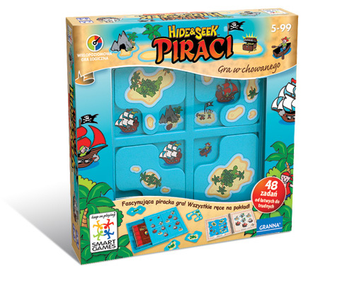 Smart Games to seria gier logicznych doskonałych dla najmłodszych, jak również dla dorosłych. Rozwijają myślenie logiczne, procesy poznawcze, spostrzeganie wzrokowe oraz wyobraźnię przestrzenną, a przy tym są wspaniałą rozrywką dla całej rodziny. W tej grze spotkasz piratów. Odkryjesz ich skarby i tajemnice. Piraci to wielopoziomowa gra logiczna. Zawiera 48 zadań do rozwiązania. Zadania mają 4 stopnie trudności. Spróbuj tak ułożyć 4 bezludne wyspy, aby na planszy zostały widoczne tylko te symbole, które zawiera zadanie. Gra rozwija zdolność logicznego i analitycznego myślenia. Wszystkie ręce na pokład!