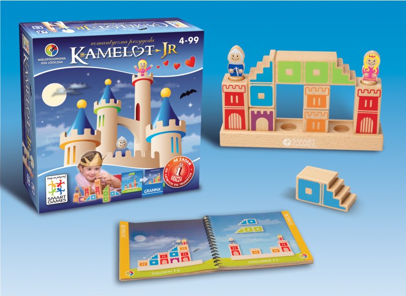 Kamelot Junior – Rycerz i królewna zostali uwięzieni w osobnych wieżach z klocków. Aby ich połączyć, musisz pomóc królewnie zbudować drogę ucieczki, albo rycerzowi – przerzucić most. Zadania kształcą umiejętność logicznego myślenia i rozwijają wyobraźnię przestrzenną. Ta gra zapewni dzieciom wiele dni wspaniałej rozrywki i doskonałych ćwiczeń.