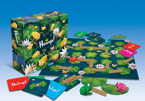 Hoop to gra logiczna, prawie abstrakcyjna. Żaby skaczą z liścia na liść. Starają się jak najszybciej zająć miejsca na liściach-domkach swoich przeciwników. Po każdym skoku znika kładka łącząca liście, pomiędzy którymi wykonany był skok. To zdecydowanie utrudnia skoki pozostałym żabom. Wygra gracz, który umieści wszystkie swoje żaby na liściach-domkach pozostałych graczy.