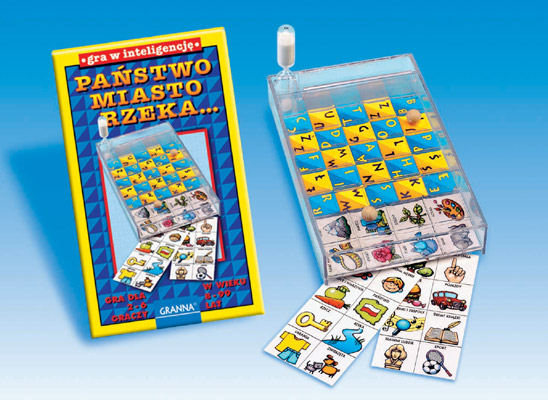 Państwo, miasto, rzeka to jedna z najpopularniejszych gier, znana także jako Gra w inteligencję. Gra jest bardzo prosta, a polega na wyszukiwaniu rzeczowników o określonej tematyce, rozpoczynających się na wylosowaną literę. Toczące się w kasetce kuleczki wskazują dziedzinę oraz literę. Gracze wypisują wszystkie znane sobie wyrazy z wylosowanej dziedziny rozpoczynające się na daną literę.