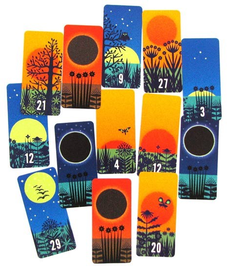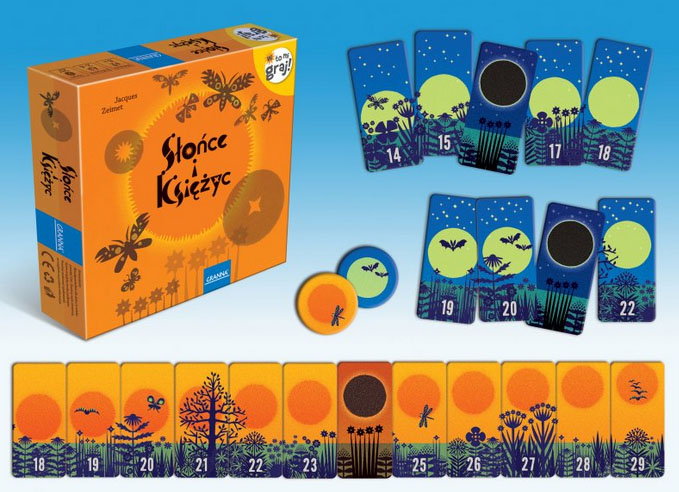 Spokój, rozważne planowanie i spryt pomogą ci przebyć długą drogę od zmierzchu do świtu. „Słońce i księżyc” to znakomita gra karciana, w której kolejne wschody i zachody słońca oraz księżyca prowadzą cię do zwycięstwa. Uważaj na rywali – karty zaćmienia mogą pokrzyżować ci plany! Magiczna atmosfera dnia i nocy. Dynamiczna rozgrywka dla 2 lub 3 graczy. Wariant drużynowy dla 4 graczy.
