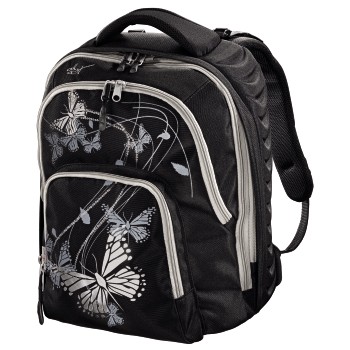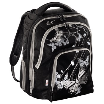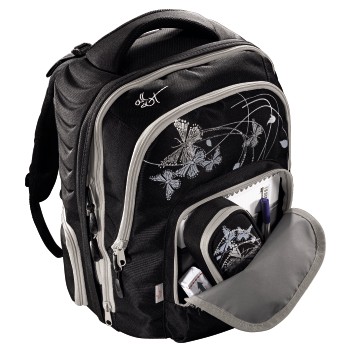 Modny i innowacyjny plecak szkolny dedykowany dla młodzieży. Przystosowany do noszenia multimedialnych urządzeń. Przestronna kieszeń główna z wszytym materiałem pozwalającym na rozszerzenie pojemności pakowej. W kieszeni głównej miejsce na notebooka 15,4" z dodatkową gumą do zabezpieczenia notebooka. Obszerna kieszeń środkowa; wewnątrz kieszeń z siateczki na zamek błyskawiczny oraz kieszeń na odtwarzacz MP3/MP4 z wyjściem na słuchawki. Kieszeń przednia z organizerem i odczepianym brelokiem na klucze. Jedna kieszeń boczna z uchwytem na bidon (pojemnik 0,6 litra).