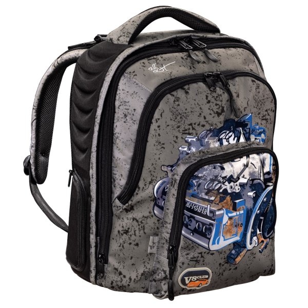 Wszystkie kieszenie zapinane są na zamek błyskawiczny. Tylna część plecaka wykonana jest ze specjalnej utwardzanej pianki, wymusza odpowiednią postawę użytkownika (dodatkowo idealna ochrona notebooka, książek, zeszytów, itp.).