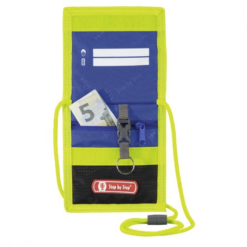 Portfel dziecięcy w wesołym motywie kolorystycznym z możliwością noszenia na szyi. Lekki, zamykany na mocny rzep portfelik posiada wszystkie niezbędne kieszonki oraz miejsce na zapisanie danych kontaktowych.