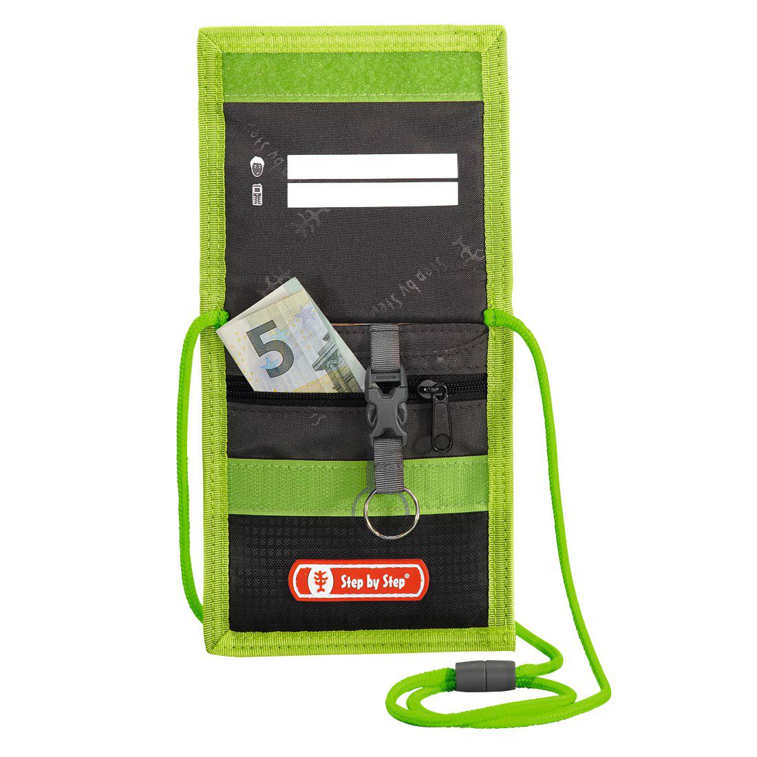 Portfel dziecięcy w wesołym motywie kolorystycznym z możliwością noszenia na szyi. Lekki, zamykany na mocny rzep portfelik posiada wszystkie niezbędne kieszonki oraz miejsce na zapisanie danych kontaktowych.