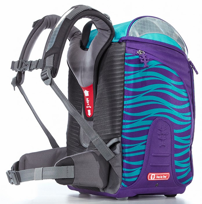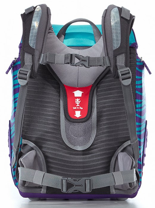 • ergonomicznie ukształtowane paski, wypełnione miękkim materiałem, które nie uciskają ramion. Możliwość regulacji wysokości położenia tornistra dzięki zmiennej wysokości mocowania szelek (Easy Adjust System), dzięki temu tornister rośnie razem z dzieckiem.