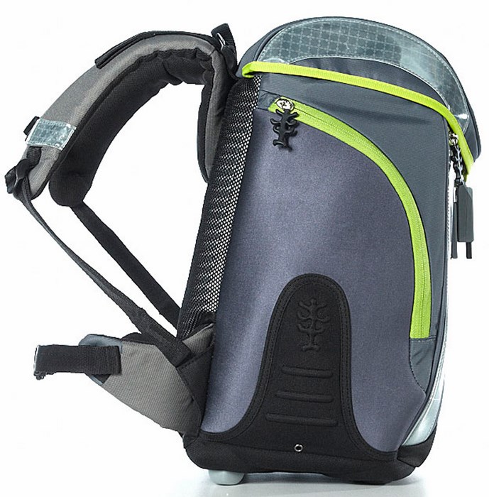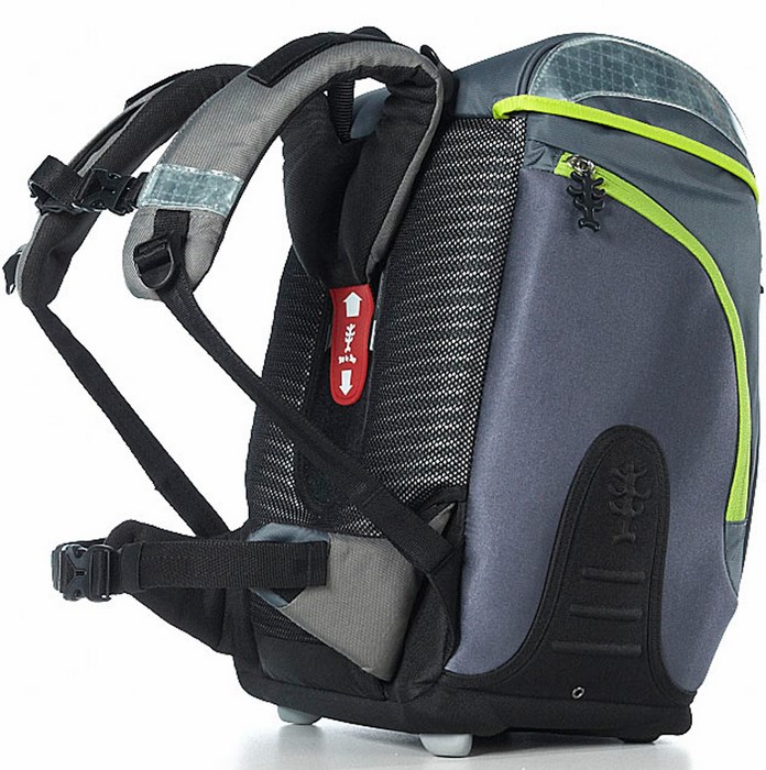 ergonomicznie ukształtowane paski, wypełnione miękkim materiałem, które nie uciskają ramion. Możliwość regulacji wysokości położenia tornistra dzięki zmiennej wysokości mocowania szelek (Easy Adjust System), dzięki temu tornister rośnie razem z dzieckiem.