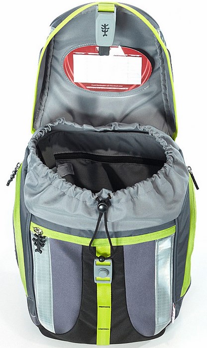 Tornister posiada komorę główną oraz dodatkowe kieszenie, w tym:
