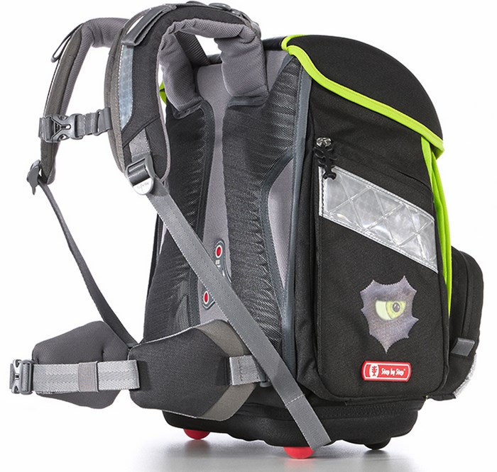 • Bezpieczeństwo na drodze – na przedzie tornistra oraz z tyłu znajdują się liczne światełka i paski odblaskowe. Tornister posiada solidnie wykonane metalowe zatrzaski ze światełkami odblaskowymi, dzięki którym Twoje dziecko będzie bezpieczne na drodze!