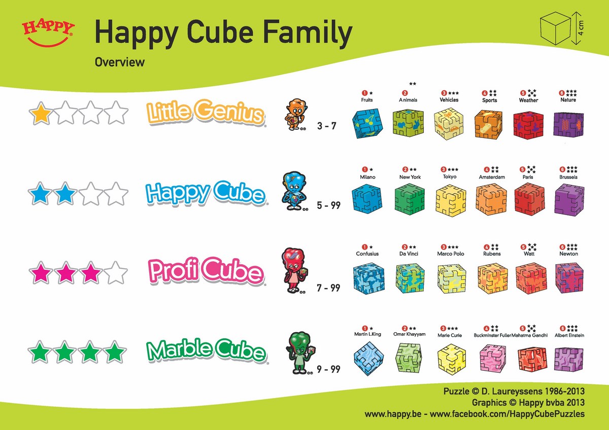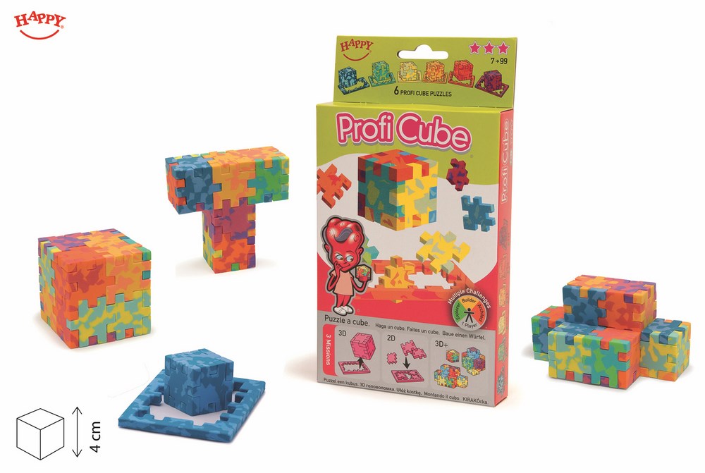 Happy Cube to wykonane z miękkiej pianki przestrzenne łamigłówki edukacyjne oparte na prostym lecz niezwykle wciągającym pomyśle. Najpierw musimy zbudować idealny sześcian, a następnie złożyć go z powrotem do ramki. Ale to nie wszystko! Zestawy można łączyć między sobą tworząc proste lub bardziej zaawansowane kształty.