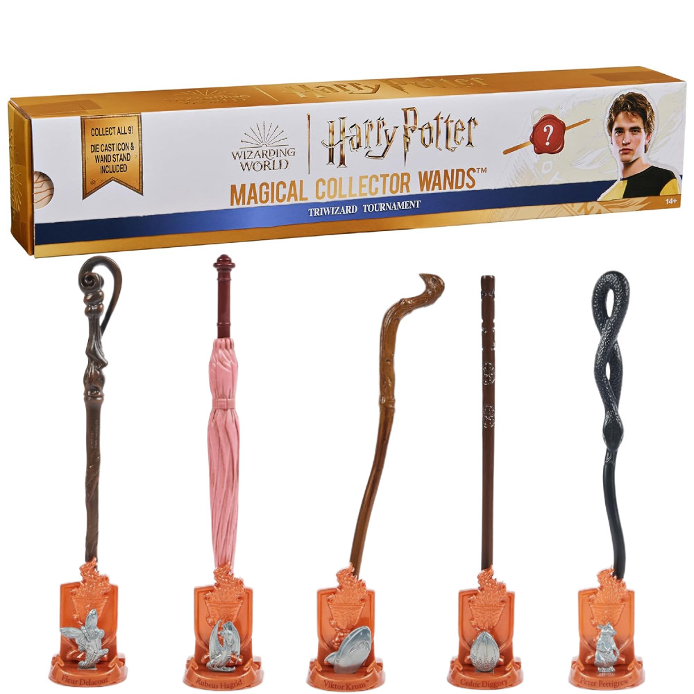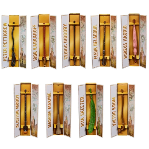 Te tajemnicze kolekcjonerskie przedmioty z serii o Harrym Potterze to pozycja obowiązkowa dla fanów i kolekcjonerów. Tak jak w filmach, to różdżka wybiera czarodzieja! W zamkniętym opakowaniu kryje się niespodzianka – 30-centymetrowa różdżka postaci wraz ze złotą podstawką ekspozycyjną oraz odlewanym akcesorium charakterystycznym dla danej postaci. Każda replika magicznej różdżki kolekcjonerskiej charakteryzuje się autentycznymi detalami i obciążoną podstawką, idealną do zabawy w odgrywanie ról. Odtwórz swoje ulubione sceny i udawaj, że rzucasz ulubione zaklęcia! Wyeksponuj swoją magiczną różdżkę kolekcjonerską w ekskluzywnym opakowaniu lub ustaw ją pionowo lub poziomo na podstawce. Unikalny odlewany dodatek w kształcie ikony idealnie pasuje do podstawki.