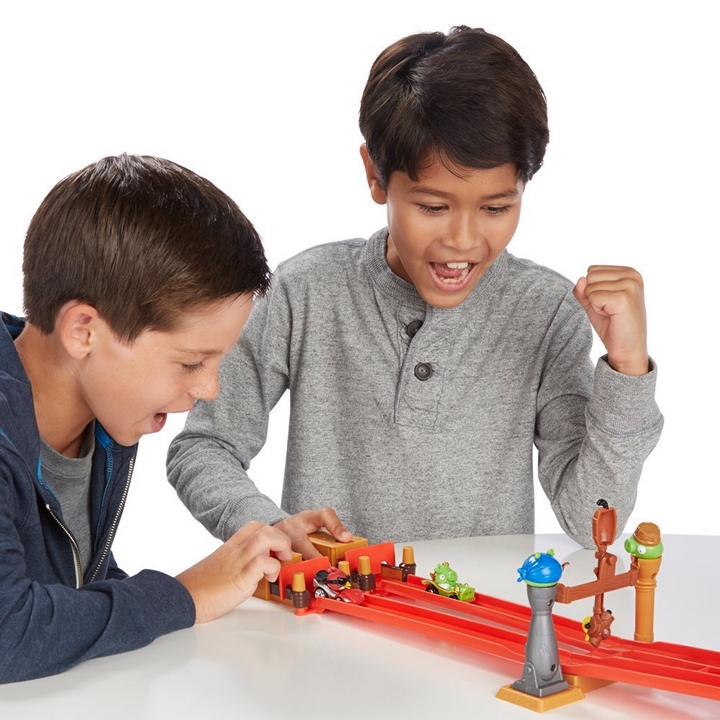 Bohaterowie gry Angry Birds Star Wars GO! są już w świecie realnym! Daj się porwać wyścigowym emocjom! Dołącz do świń lub ptaków i pędź z zawrotną prędkością po specjalnie przygotowanych downhillowych torach z mnóstwem wywijasów i zakrętów! Zachowaj jednak ostrożność! Uważaj na niebezpieczne odcinki trasy, przebiegłych przeciwników wiszących Ci na ogonie i moce specjalne, zdolne zrzucić prowadzącego na koniec stawki.