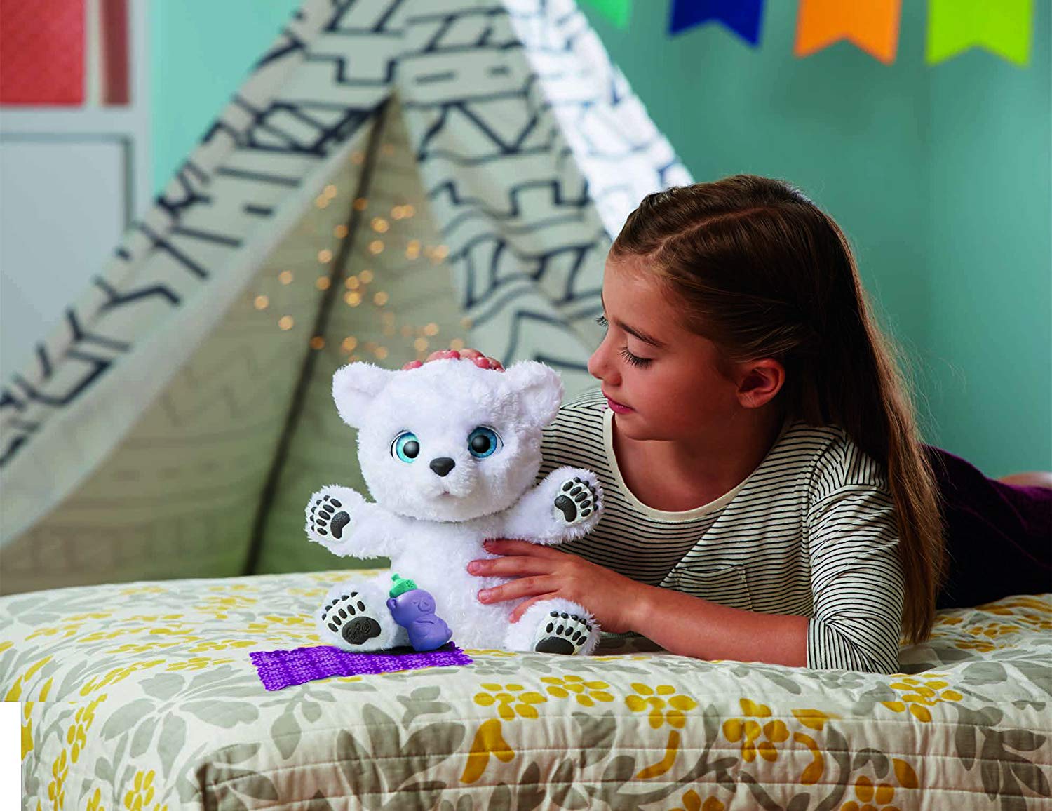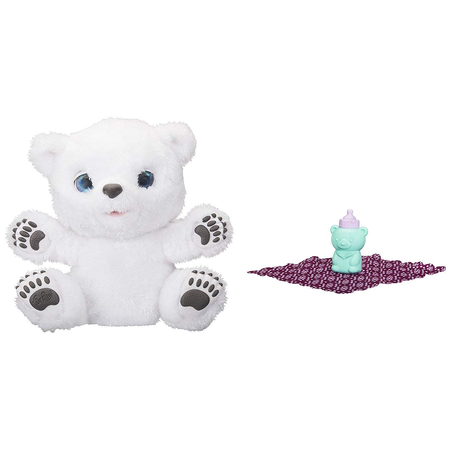 Hasbro FurReal Przyjaciel Interaktywny miś polarny B9073 ten uroczy miś polarny ma przepiękne duże błękitne oczy i jak przystało na misia polarnego, ma śnieżnobiałe błyszczące futerko i słodkie łapki, aż się prosi, by go mocy przytulić i okazać mu czułość i miłość. Ten mały słodziak wymaga twojej opieki więc gdy zgłodnieje nakarm go, używając misiowej buteleczki, po jedzeniu ułóż go do snu przykrywając kocykiem. Głaskanie misie wywoła u niego radosne dźwięki, ale bądź czujny miś może też się przeziębić wtedy będzie kichał.