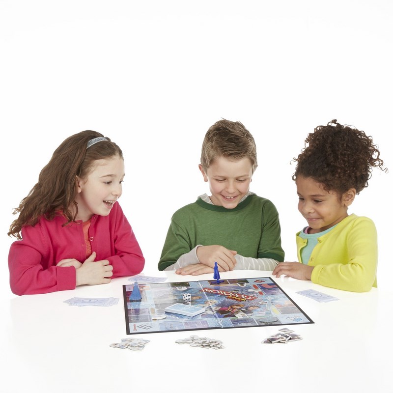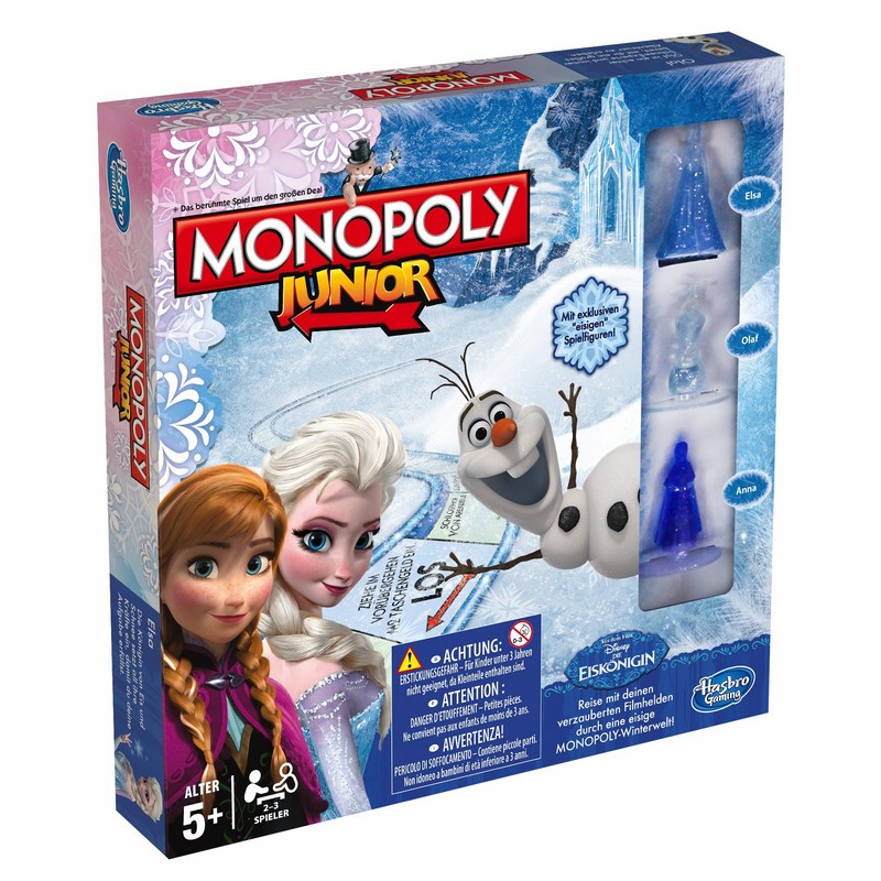 W tym wydaniu kultowej gry spotkasz postaci z hitu Disneya Kraina Lodu. Monopoly Junior Frozen jest podobne do klasycznego Monopoly, tyle że stworzone specjalnie z myślą o młodszych graczach. Graj jako Twoja ulubiona postać z Krainy Lodu: Anna, Elsa albo Olaf. Zestaw zawiera wyjątkowe, przezroczyste, zdobione brokatem filmowe figurki.