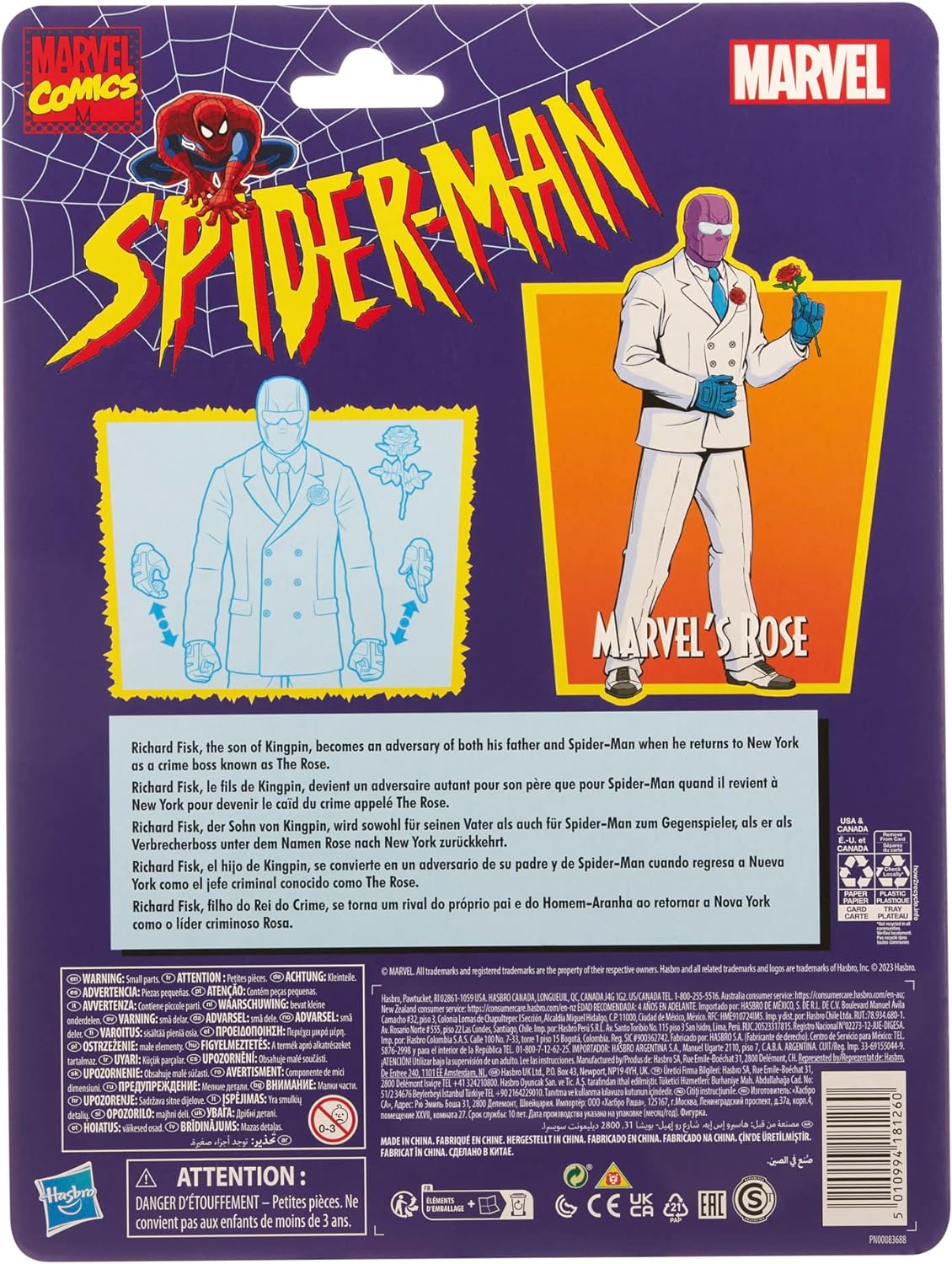 Richard Fisk, syn Kingpina, staje się przeciwnikiem zarówno swojego ojca, jak i Spider-Mana, kiedy wraca do Nowego Jorku jako szef przestępczości znany jako Rose. Ta figurka Richarda Fiska Marvel Rose jest inspirowana wyglądem postaci w niesamowitych komiksach Spider-Mana i stanowi świetny dodatek do każdej kolekcji figurek Marvel Legends. Ta kolekcjonerska figurka Hasbro Marvel Legends jest wyposażona w 5 akcesoriów, w tym blastery i alternatywne dodatki. Figurka akcji jest retro reprodukcją opakowania Marvel Comics, które będzie doskonałym dodatkiem do każdego fana Marvela lub ekspozycji kolekcjonerskiej.