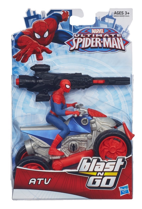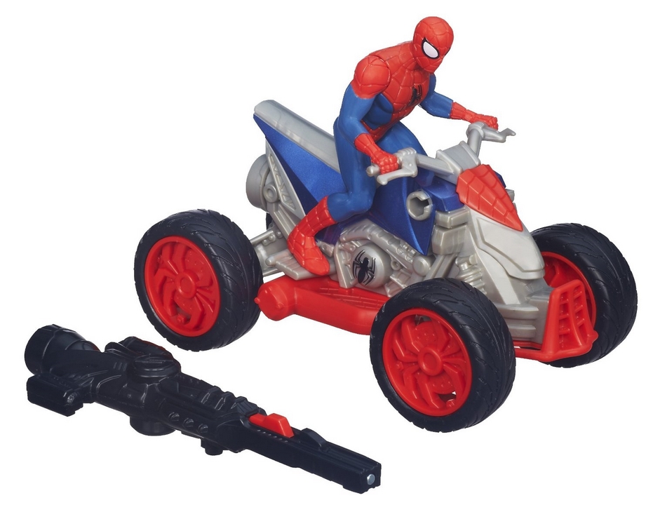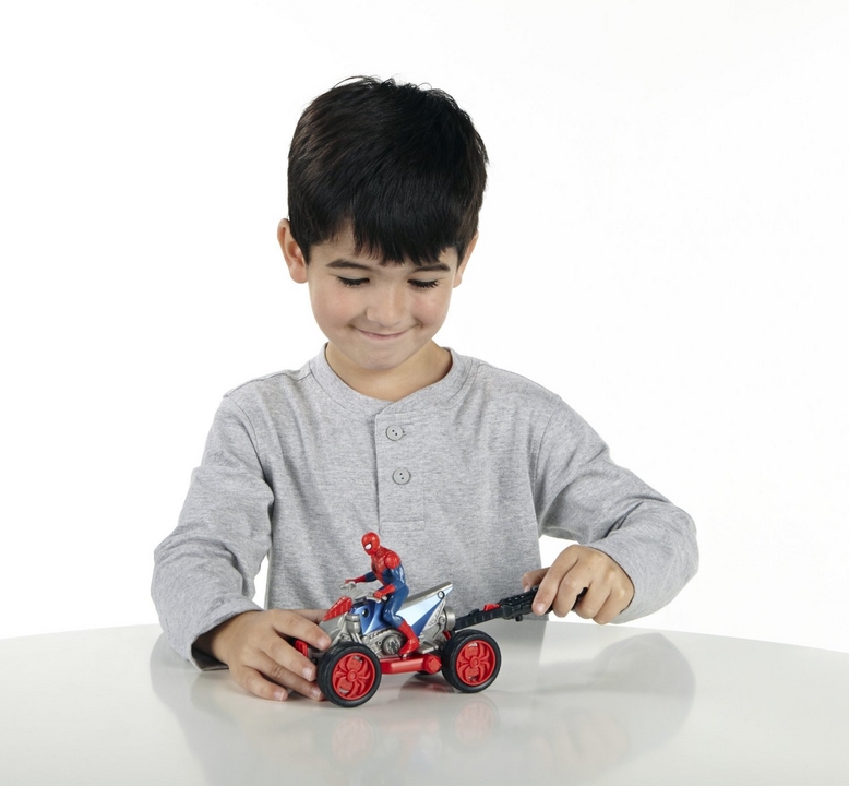 Hasbro SpiderMan Quad z Wyrzutnią ATV A6643. Główny bohater filmu „Niesamowity Spider-Man” tym razem ma do swojej dyspozycji Quad z Wyrzutnią. Wyżutnię można zamontować na pojeździe.