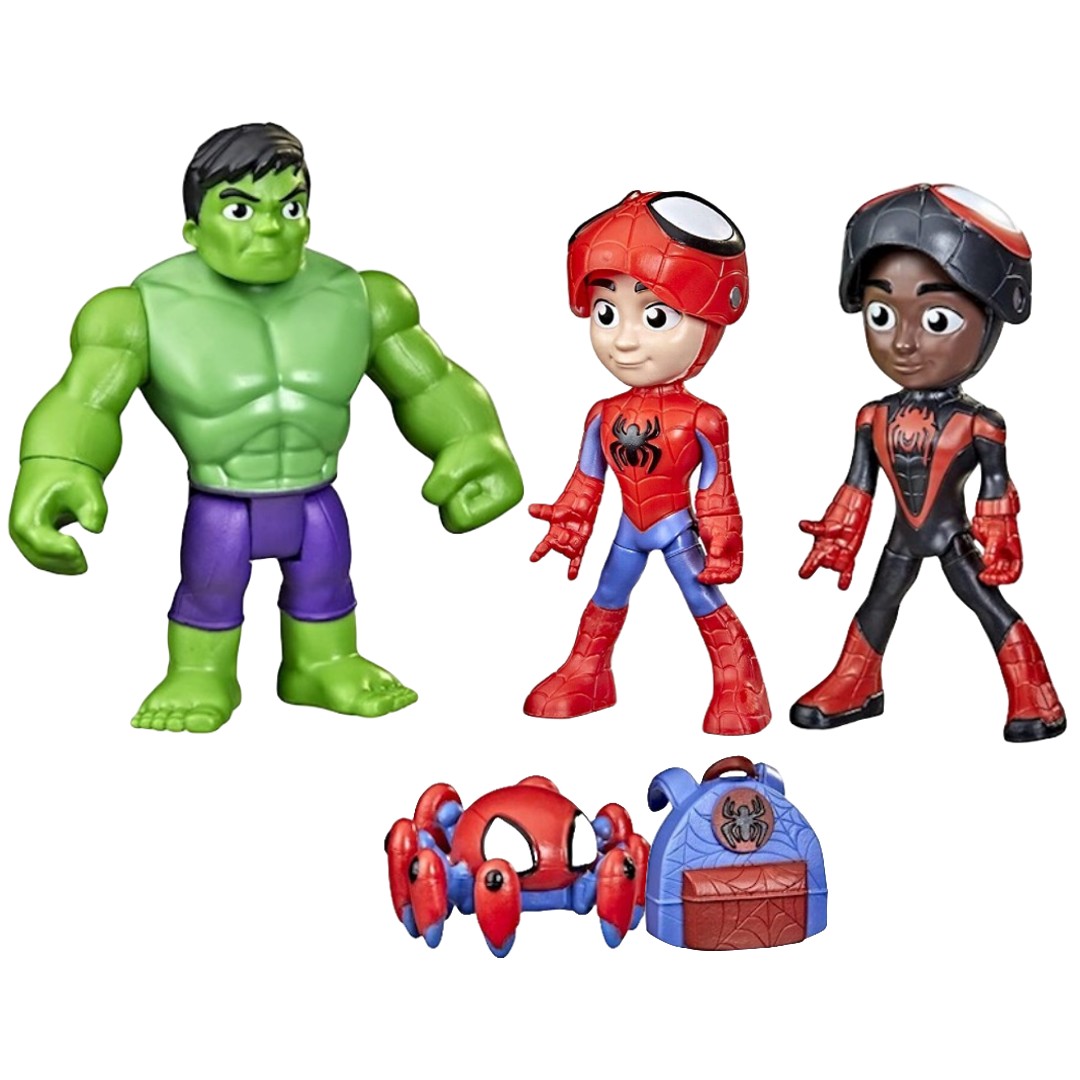 „Spidey i Super Kumple” to pierwszy w historii serial animowany z uniwersum Marvela kierowany do dzieci z konkretnej grupy wiekowej – przedszkolaków! Z każdej szalonej przygody bohaterów płynie ważna lekcja o istocie przyjaźni. Na przykładzie Spidey’a i jego kumpli, dzieci mogą nauczyć się o wzajemnym szacunku, akceptacji odmienności oraz pracy zespołowej. W zestawie znajdują się cztery ruchome figurki Trace-E i Spidey oraz Hulk i Miles Morales