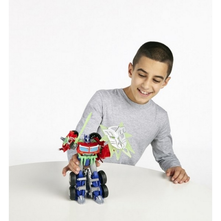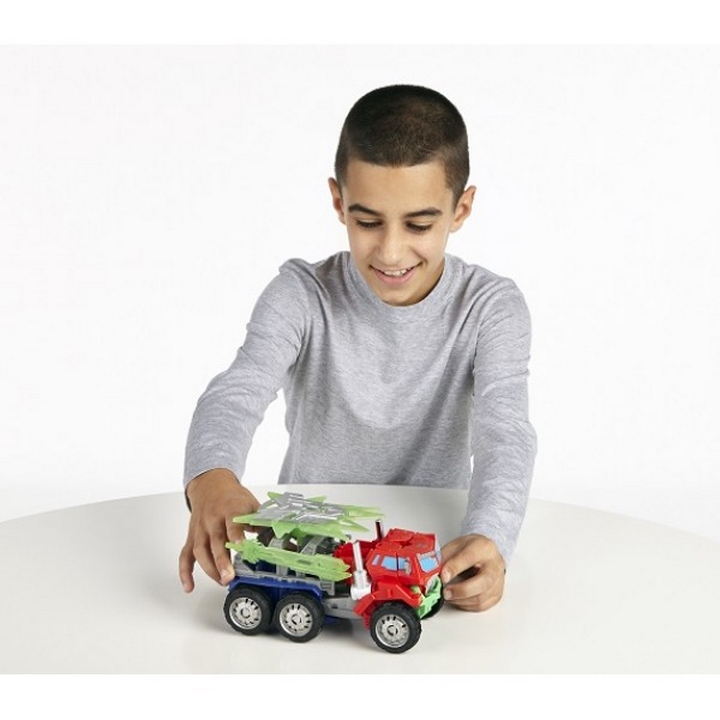 Hasbro Transformers Voyager Optimus Prime A6212 to przywódca Autobotów. Optimus nie ma sobie równych zarówno jeśli chodzi o zdolności bojowe jak i inteligencję. Jedną z głównych jego cech jest współczucie, które okazuje wszystkiemu co żyje. Walczy w obronie słabych i tych, których wolność jest zagrożona. Za pomocą 5 ruchów przetransformować figurkę w pojazd i na odwrót! Optimus przemienia się w potężny samochód bojowy.