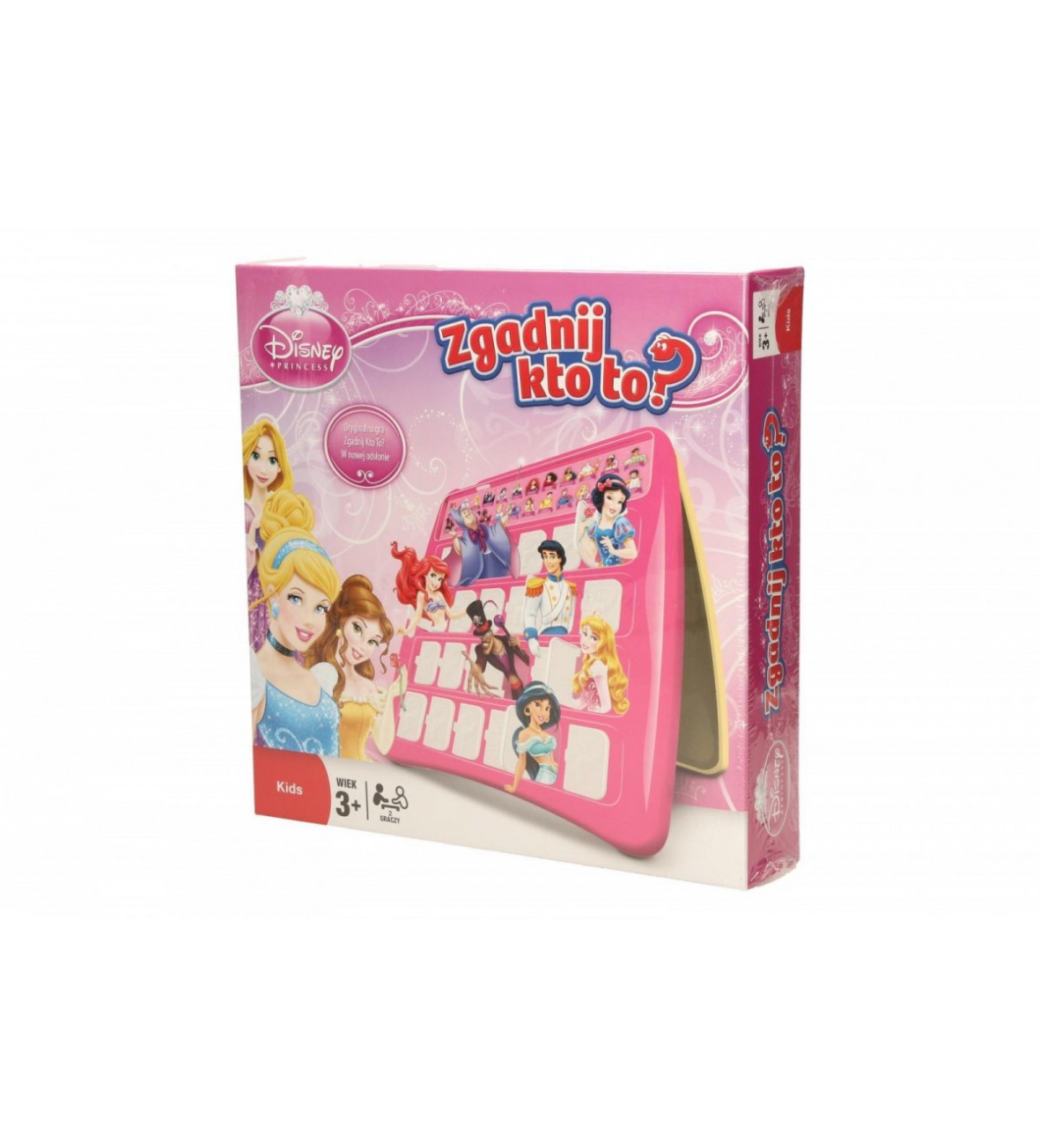 Zgadnij kto to? w wersji Disney Księżniczki to klasyczna gra w Zgadnij kto to?, w której zgadujesz, jaką postacią jest Twój przeciwnik, zadając mu mnóstwo szczegółowych pytań. W tej edycji bohaterami są ulubione Księżniczki i inne postacie Disney.