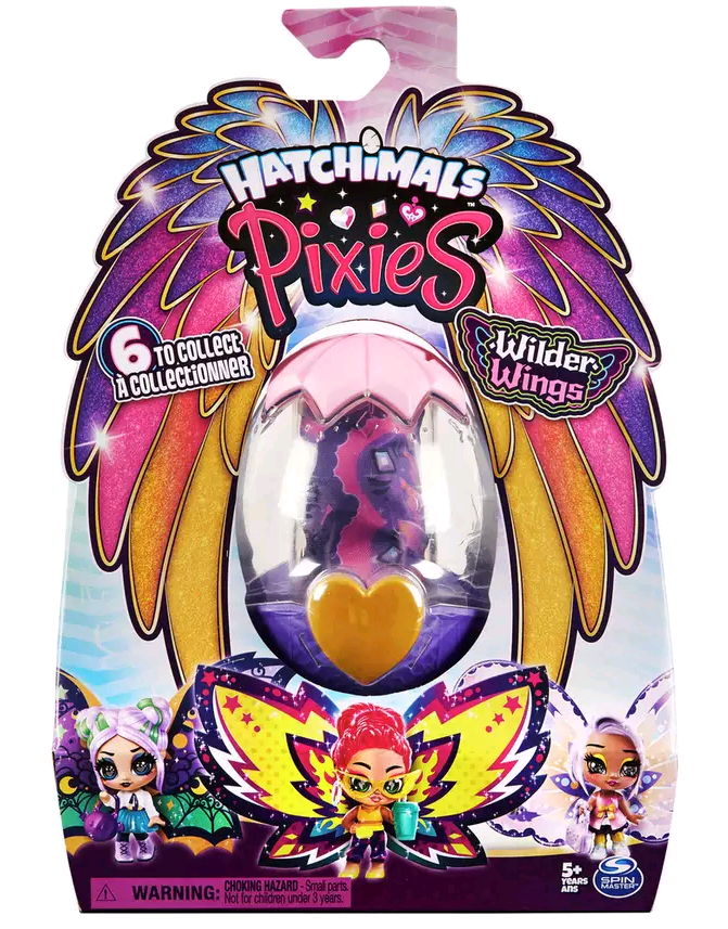Hatchimals Pixies Wilder Wings to magiczne skrzydlate wróżki żyjące wewnątrz jaj. W zestawie znajduje się prześliczna mała figurka wróżki Posh Petra oraz akcesoria zamknięte w jajku, które jest także domkiem laleczki. Maleńka Petra jest owinięta swoimi skrzydłami i dopiero po jej odwinięciu możemy zobaczyć, jaka jest śliczna. W zestawie znajdują się różowe okulary oraz szara torebeczka.