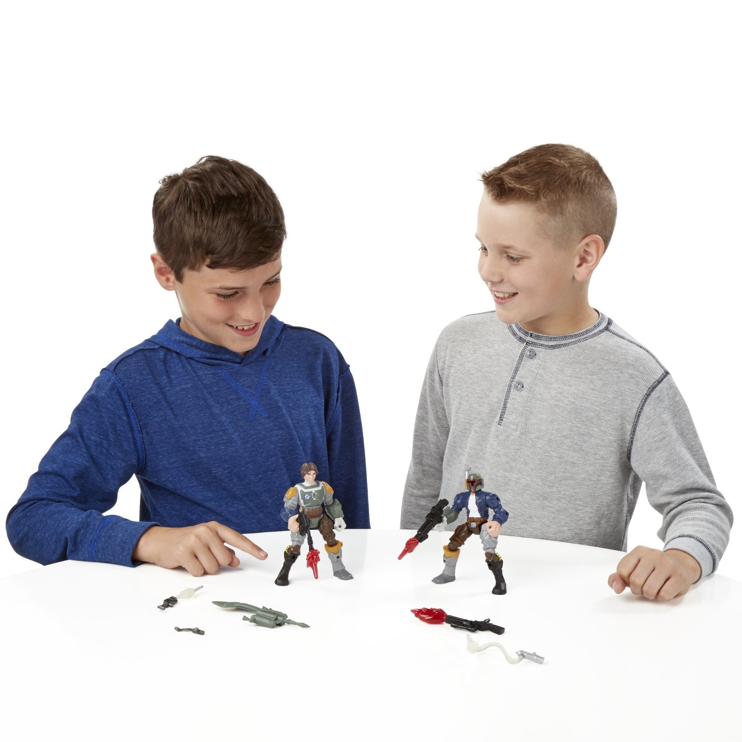Z odległej galaktyki przybywają zabawki z serii Star Wars: Hero Mashers! Wszystkie części figurek są ruchome, więc z łatwością możesz je wymieniać z innymi bohaterami. Masz swojego ulubionego bohatera? Teraz możesz go tak zbudować by galaktyka była Twoja. Dołóż mu nogę Dartha Vadera i ramię Luka a będzie niepokonany! Stwórz ostateczną broń w walce ze złem i zbuduj swojego superbohatera z figurek najbardziej znanych postaci Marvel i Star Wars. Figurka Hana Solo i Boba Fetta mają po 9 punktów przegubowych.