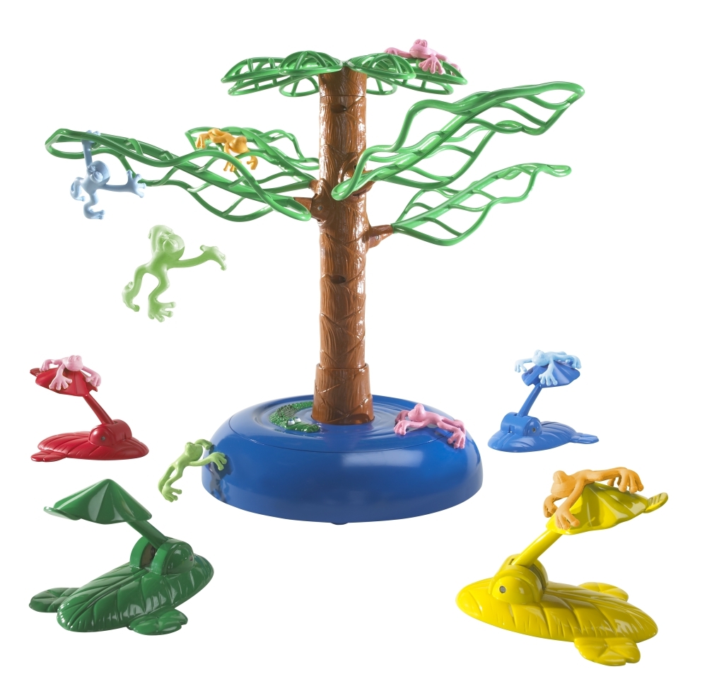 Posadź żabkę na specjalnym liściu i wyrzuć ją trafiając tak, by zawiesiła się na drzewie. Na drzewie musi znajdować się i przetrwać jak najwięcej Twoich żabek, ale to zadanie nie jest takie łatwe, gdyż nie dosyć, że drzewko się obraca podczas trafiania w nie żabkami, to na dodatek w pewnym momencie drzewko się trzęsie. Wygrywa ten gracz, który ma na drzewie najwięcej żabek.