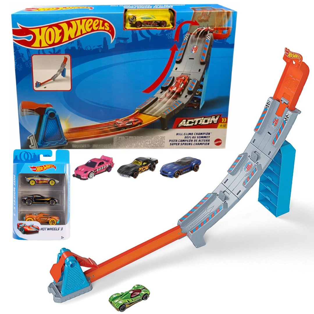 Hot Wheels Action Rywalizacja Mistrzów Zestaw Wyścig pod górę GBF83 + 4 autka