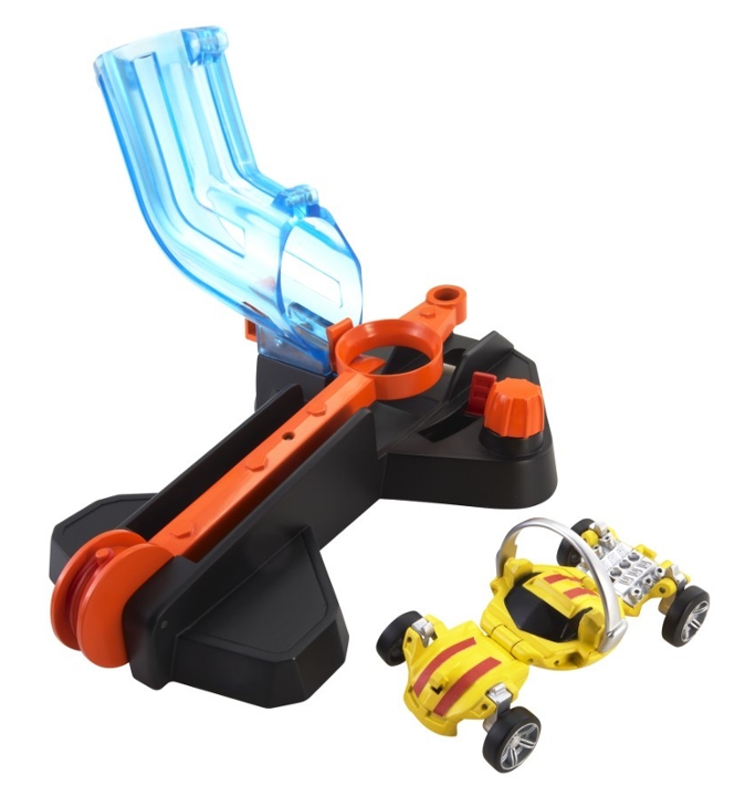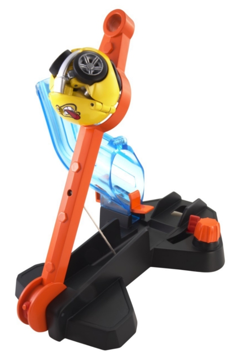 Czas na prawdziwe wyzwanie! Wystrzel kulę, która w locie przechodzi transformację w samochodzik Hot Wheels! Katapulta ma duży zasięg i regulowaną siłę wystrzału dzięki czemu będziesz mieć pełną kontrolę nad doborem trajektorii lotu. Gdy Autokula Hot Wheels jest gotowa do wystrzału, wyceluj w upatrzony obiekt i strzel! Podczas zabawy zdobywaj dodatkowe punkty za trafienie w cel i transformację Autokuli w pojazd!