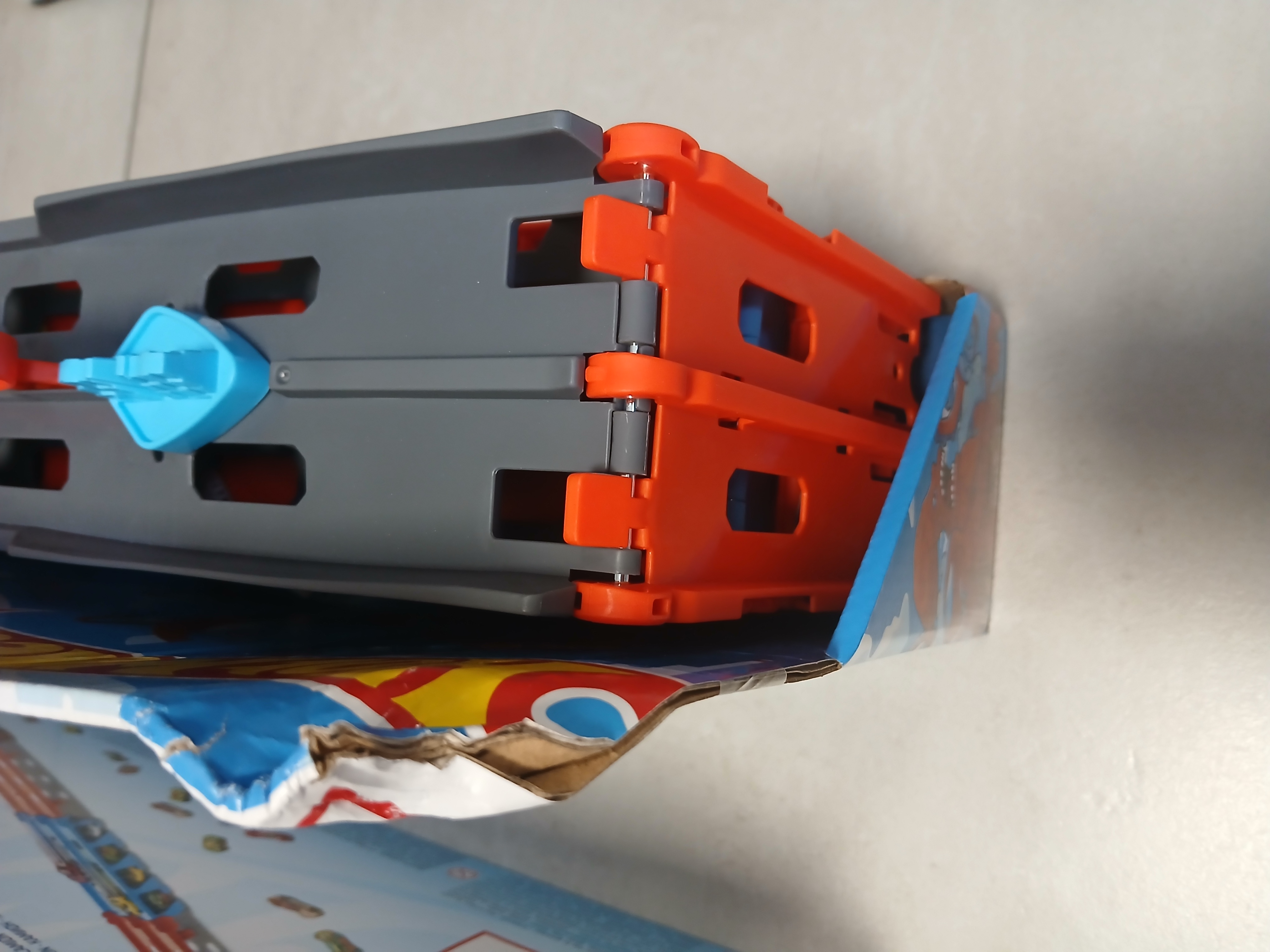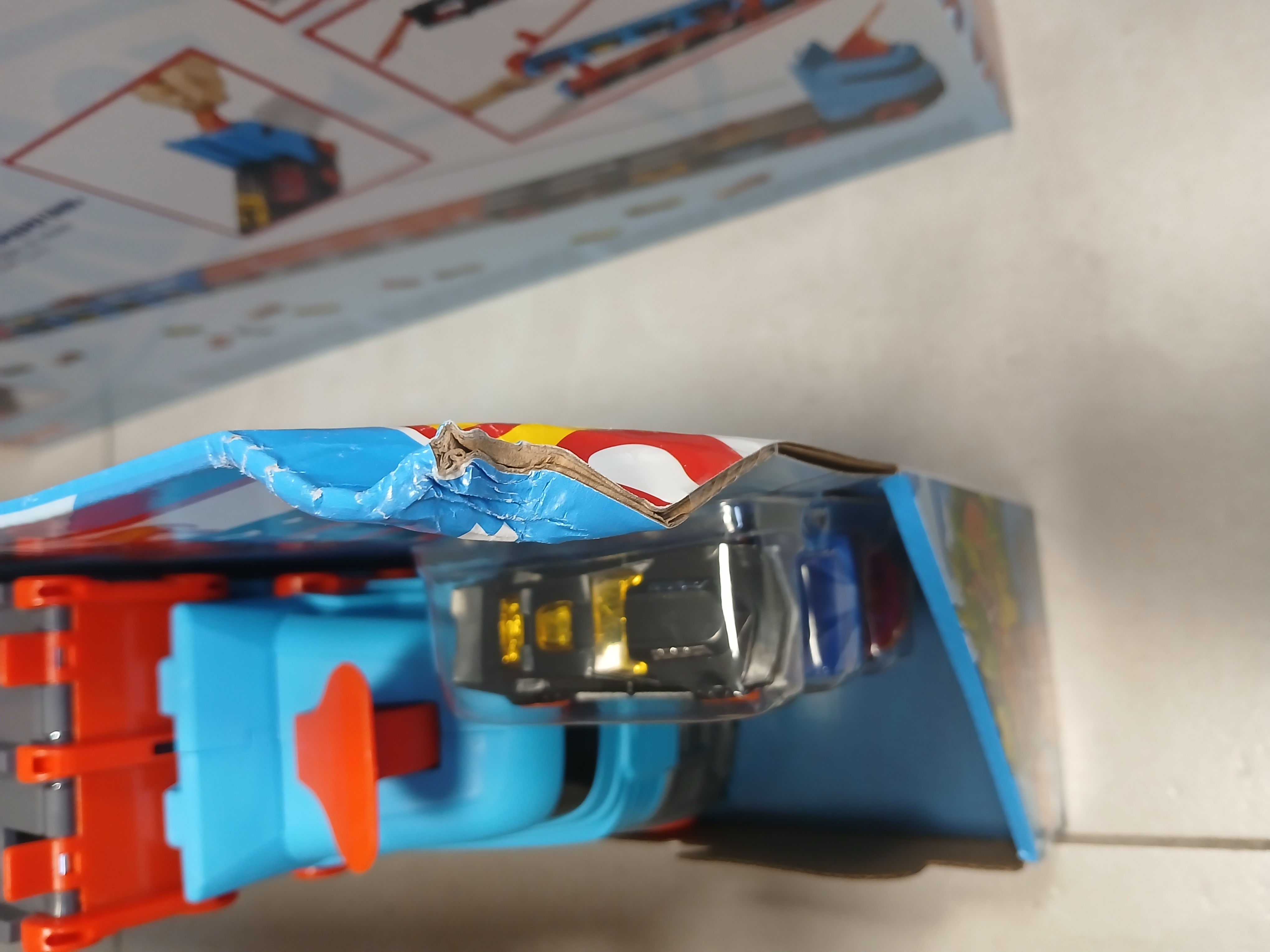Pora wspiąć sie na jeszcze wyższy poziom ekstremalnej zabawy wraz z transporterem 2w1 od Hot Wheels. W transporterze można przechowywać 22 autka Hot Wheels – widać je przez małe okienka w naczepie. Po pociągnięciu za uchwyt i rozłożeniu transporter zmienia się w tor wyścigowy o długości aż 1,8 m! Przechowywane pojazdy są wciąż widoczne pod torem, a kabina ciężarówki zamienia się w podwójną wyrzutnię, która posyła dwa samochodziki w ekscytujący wyścig. Dźwignia znajdująca się na końcu toru spowoduje, że pierwszy z pojazdów ukończy i wygra wyścig, natomiast drugiego czeka kraksa! Zestaw łączy się z innymi zestawami do zabawy Hot Wheels City. Zestaw zawiera trzy samochodziki Hot Wheels w skali 1:64.