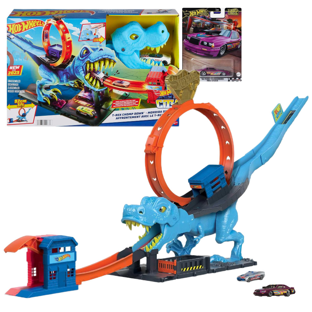 Hot Wheels City Pętla T-Rexa HKX42 + Autko '86 Ford Thunderbird Pro Stock HRT72