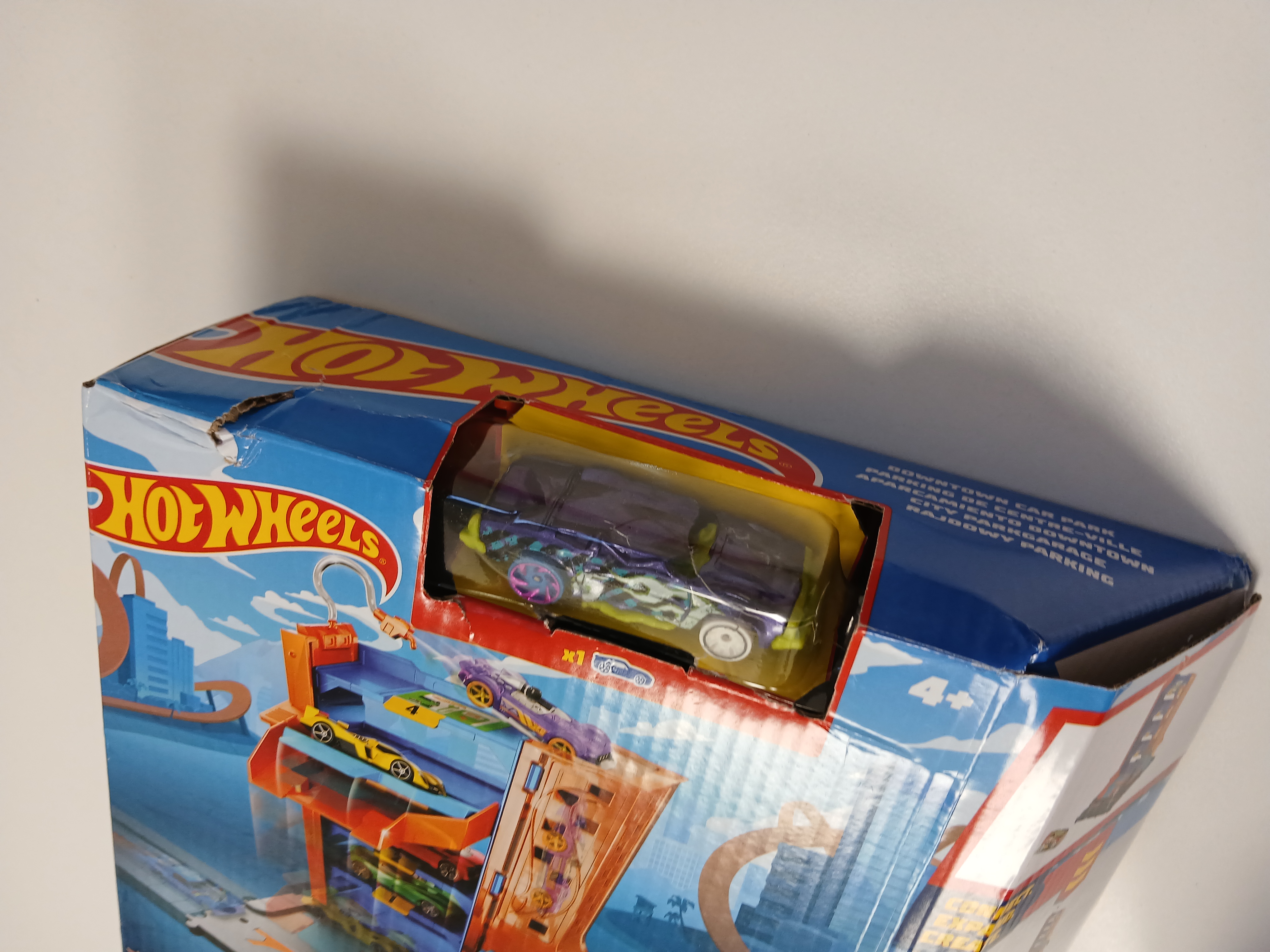 Każde miasto potrzebuje parkingu, a Hot Wheels™ City potrzebuje wyjątkowego parkingu! Ten zestaw ma niesamowite funkcje takie jak przezroczysta rampa wyjazdowa, winda samochodowa i ruchoma bramka! Rajdowy parking ma cztery poziomy, a każdy z nich łączy się z przezroczystą konstrukcją wyjazdową, która wypuszcza samochodziki ku nowym przygodom. Łączy się z innymi zestawami Hot Wheels® za pomocą licznych punktów (zestawy sprzedawane oddzielnie) i zawiera jeden pojazd Hot Wheels®, aby zabawę można było zacząć od razu po otwarciu opakowania.Kolory i elementy dekoracyjne mogą się różnić.