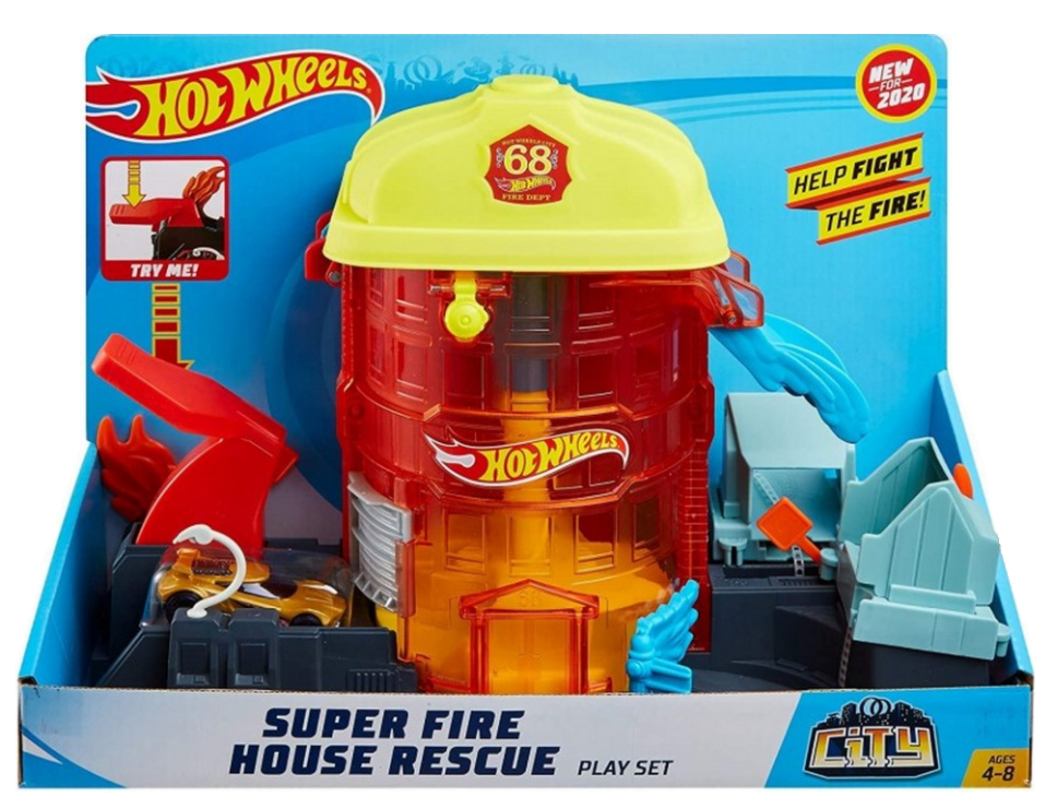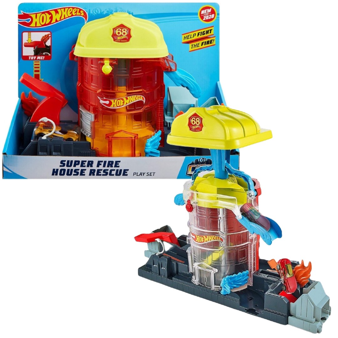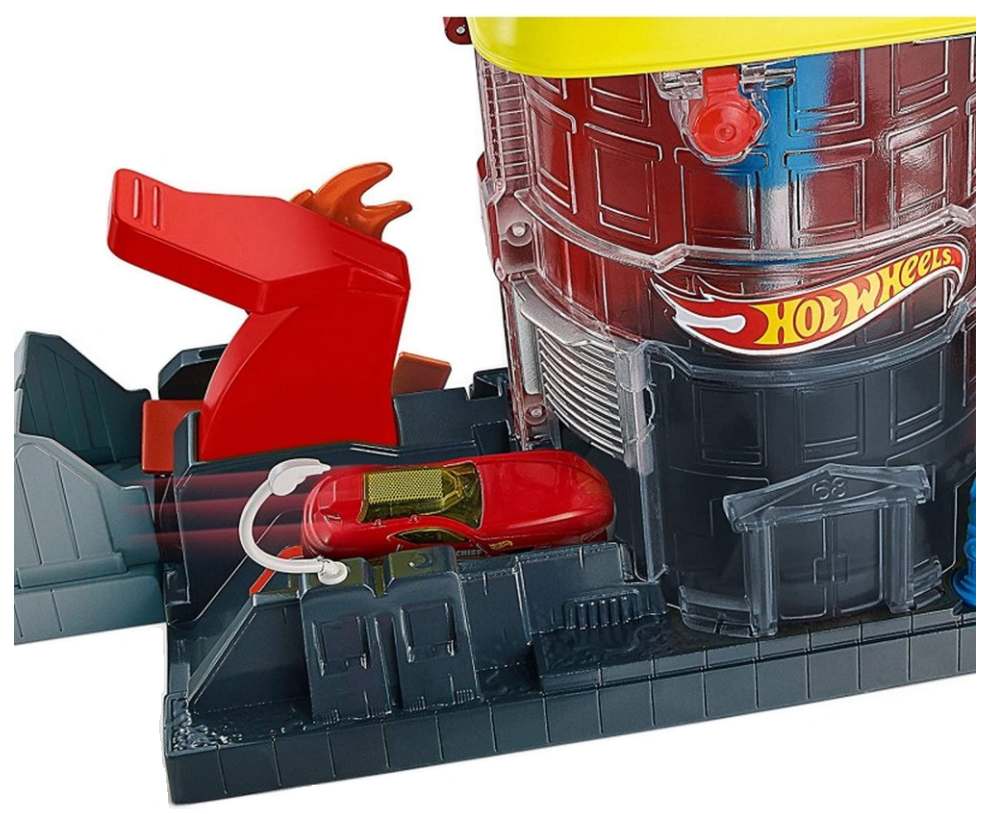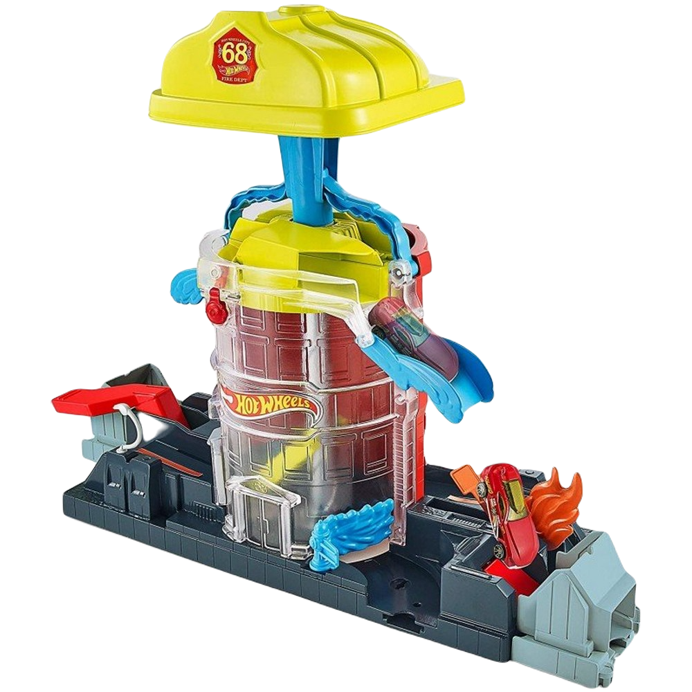 Zestaw z całą pewnością przypadnie do gustu fanom szybkich wyścigówek oraz straży pożarnej. Dzięki temu zestawowi zabawa wejdzie na jeszcze wyższy poziom i to dosłownie, bo remiza ma specjalną ruchomą platformę, która porusza się w górę. Okrągła budowla z dachem przypominającym kask strażacki jest jednocześnie torem i platformą do tworzenia akrobacji