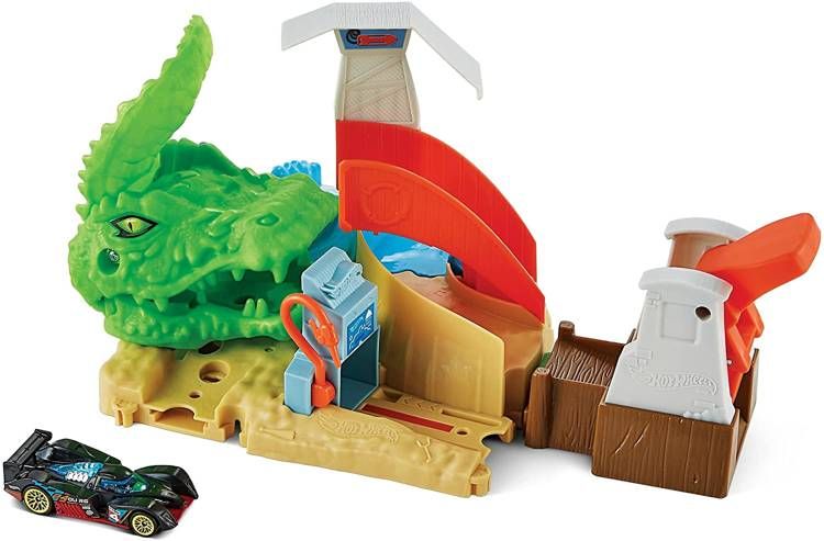 Czas na wielką przygodę z nowymi wyjątkowymi zestawami Hot Wheels City vs. Toxic Creatures , które utrzymują w napięciu akcję oraz zabawę na wysokich obrotach. Ćwicz swoje umiejętności bohaterskimi autkami Hot Wheels! Walcz z aligatorem przyczajonym w warsztacie, pokonaj nietoperza ukrywającego się w opuszczonym domu, nie daj się schwytać pająkowi w parku czy dinozaurowi w lunaparku, uważaj na potężną żmiję na moście. Ruszaj ku przygodzie!