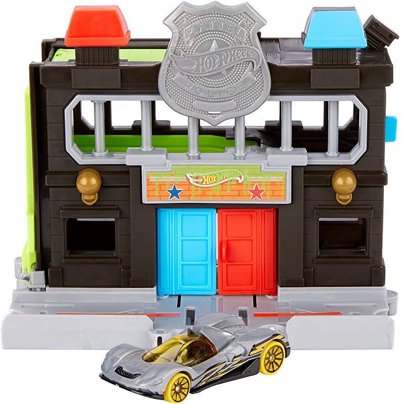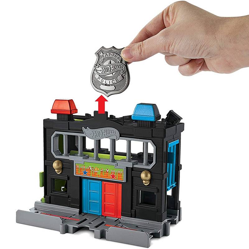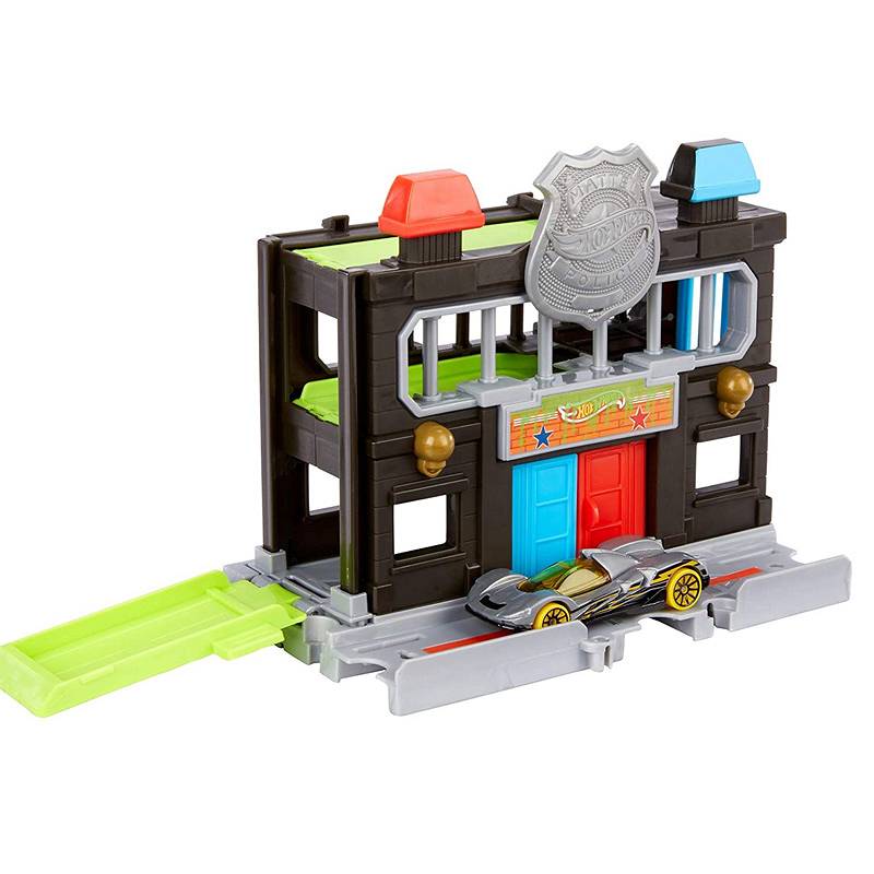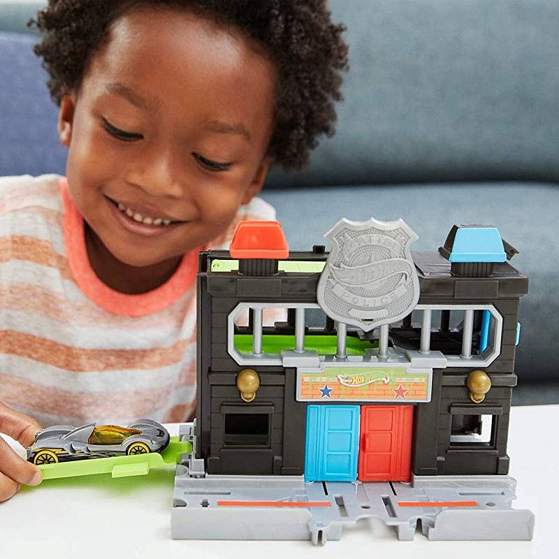 Dzieci mogą odkrywać Hot Wheels® City, odwiedzając kultowe miejsca samochodami z serii Hot Wheels®. Zamknij bandytów na posterunku policji, zjedź po rurze w remizie strażackiej, zatankuj paliwo na stacji benzynowej, złap złośliwą małpę w elektrowni i umykaj przed piraniami w akwarium. Zestawy można łączyć bezpośrednio z innymi zestawami Hot Wheels® za pomocą nowego systemu łączenia, który jest kompatybilny z pomarańczowym torem.