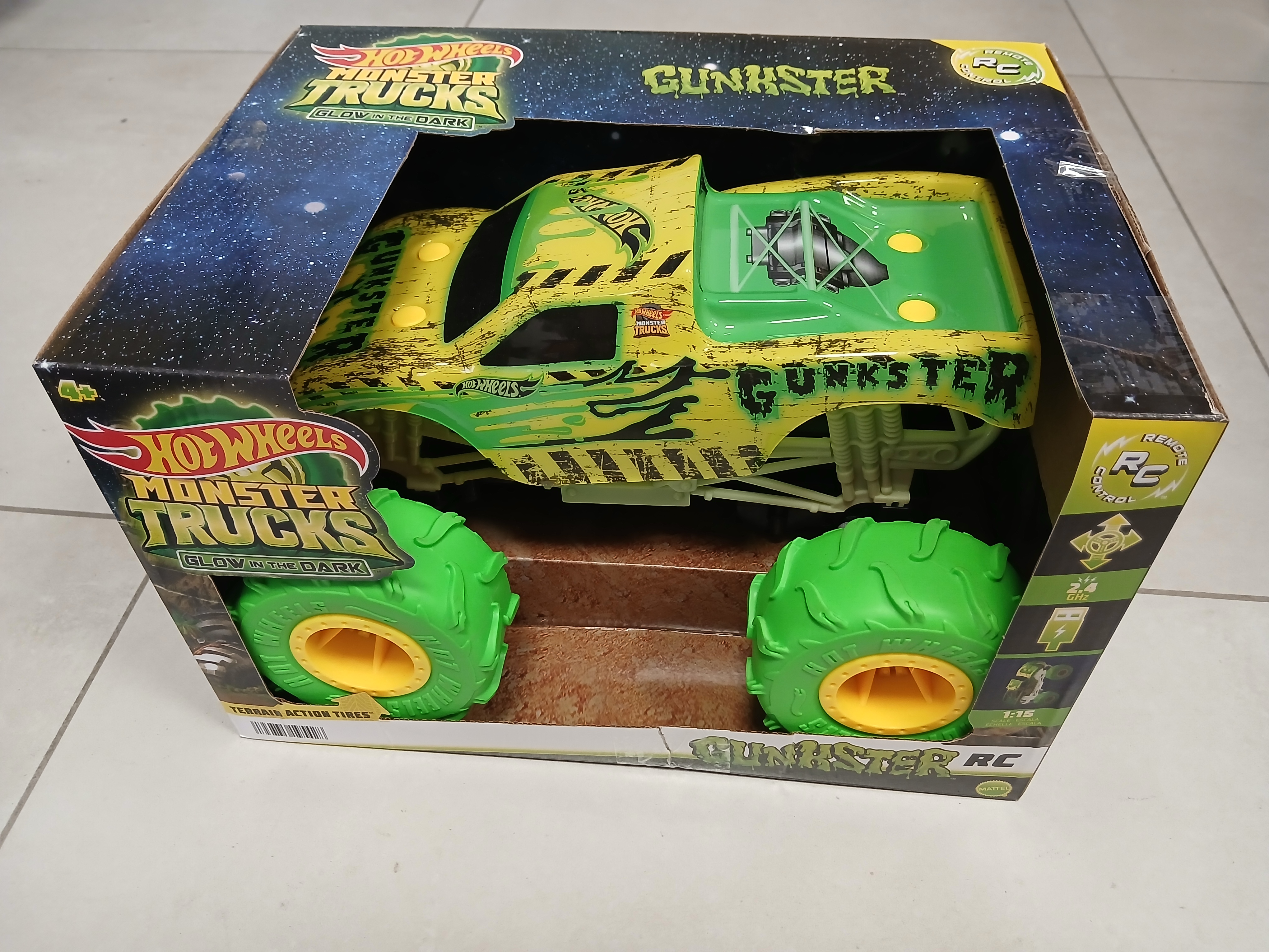 Hot Wheels Glow in the Dark Monster Trucks Pojazd R/C Gunkster HTP15 - poprzezentacyjny
