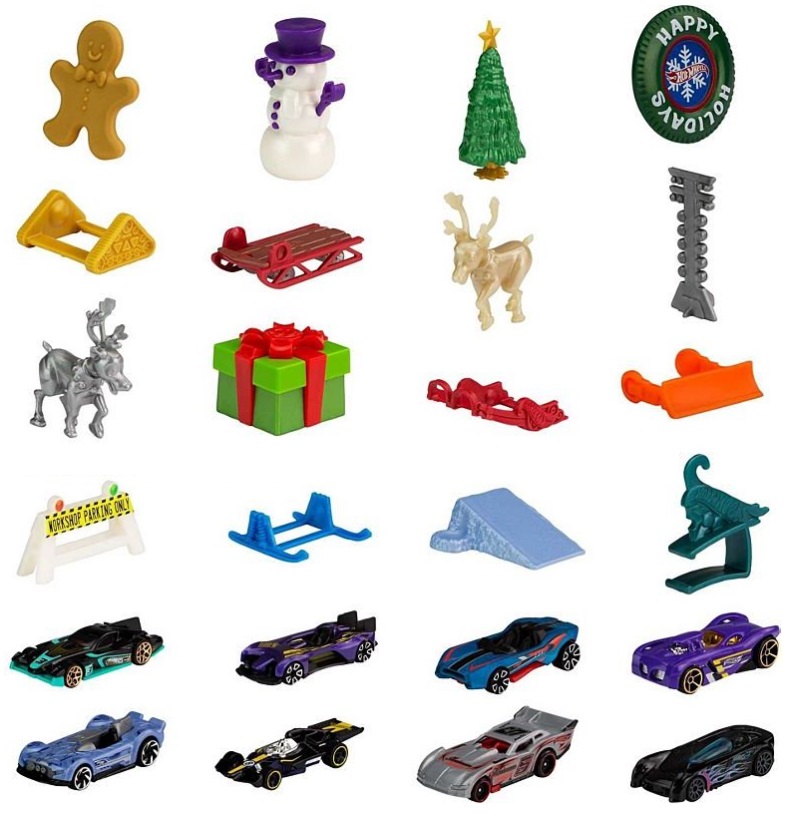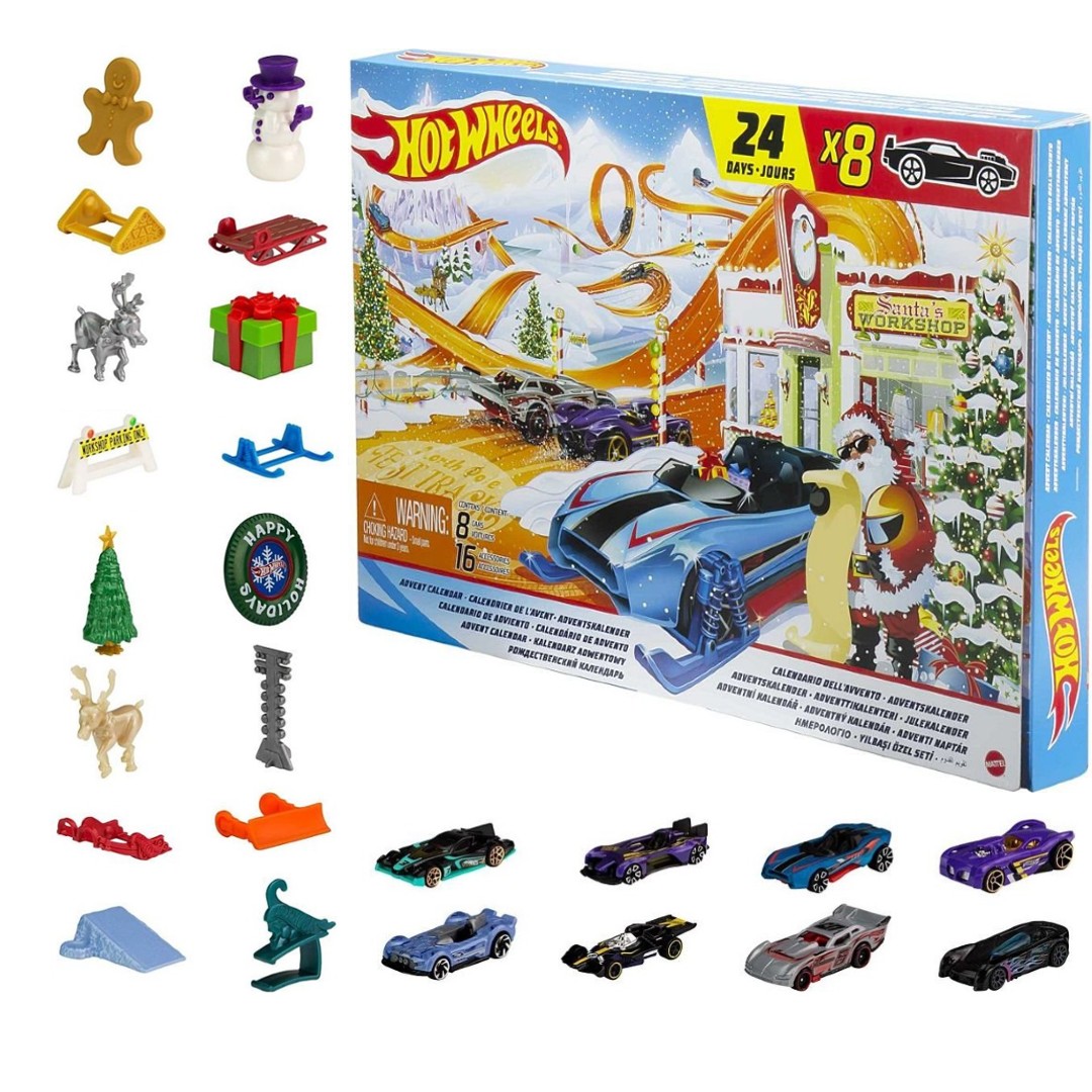 Odliczaj dni do świąt, korzystając z tego wyjątkowego, kolorowego kalendarza adwentowego Hot Wheels z 24 okienkami z niespodziankami na każdy dzień. Odkrywaj zabawki Hot Wheels od pierwszego dnia grudnia aż do Wigilii! Ten kalendarz adwentowy Hot Wheels spodoba się miłośnikom Hot Wheels w każdym wieku. Zawiera osiem pojazdów z motywem Hot Wheels i 16 akcesoriów na każdy dzień do Bożego Narodzenia. Przez wszystkie dni grudnia aż do świąt dzieci mogą odkrywać ekscytujące niespodzianki.