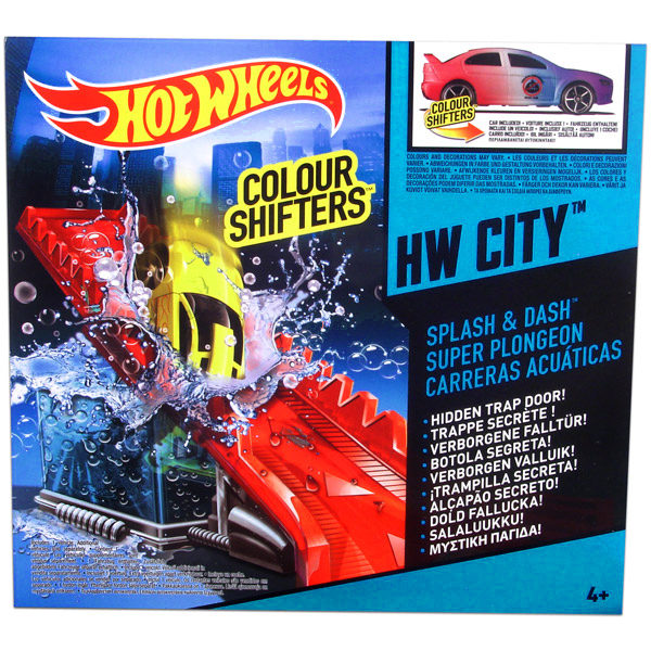 Małe zestawy z kolekcji Color Shifters® zapraszają Cię do fascynującej zabawy w zmiany koloru! Obserwuj transformację koloru samochodu podczas niezwykłych przygód: wystrzel go do wnętrza cysterny zatopionej w „bagnie” albo niech wpadnie przez zapadnię w wodną pułapkę! Zimna lub ciepła woda sprawi, że auto zmieni kolor!