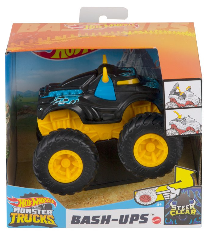 Autko Monster Trucks stworzone jest do prawdziwych akcji wyczynowych, rywalizacji i demolki! Pokonaj konkurencję za pomocą pojazdów w skali 1:43 Hot Wheels Monster Trucks z ogromnymi kołami. Kiedy pojazdy Monster Trucks Bash-Ups zderzają się lub uderzają w przeszkodę, otwierają się na trzy różne sposoby. Rozbij i złóż je, aby rozpocząć zabawę od nowa! Każde opakowanie zawiera informacje dotyczące danego Monster Trucka, obejmujące między innymi jego nazwę, typ i unikalny atak – aby odgrywanie przygód było jeszcze ciekawsze!