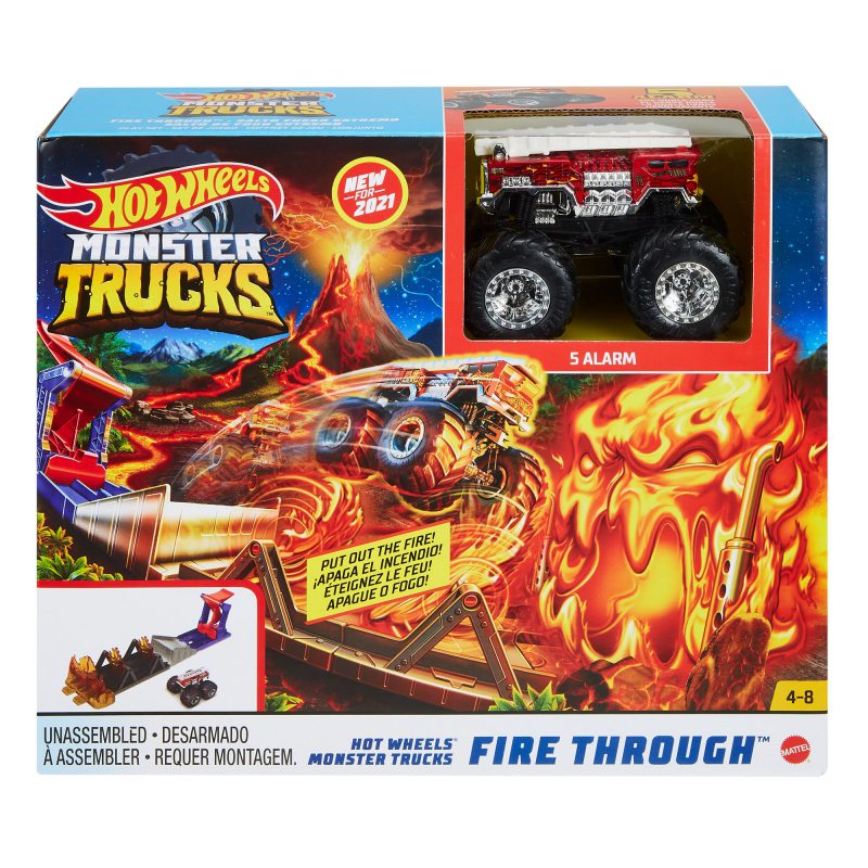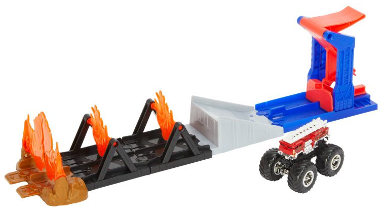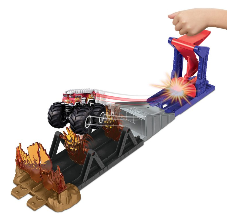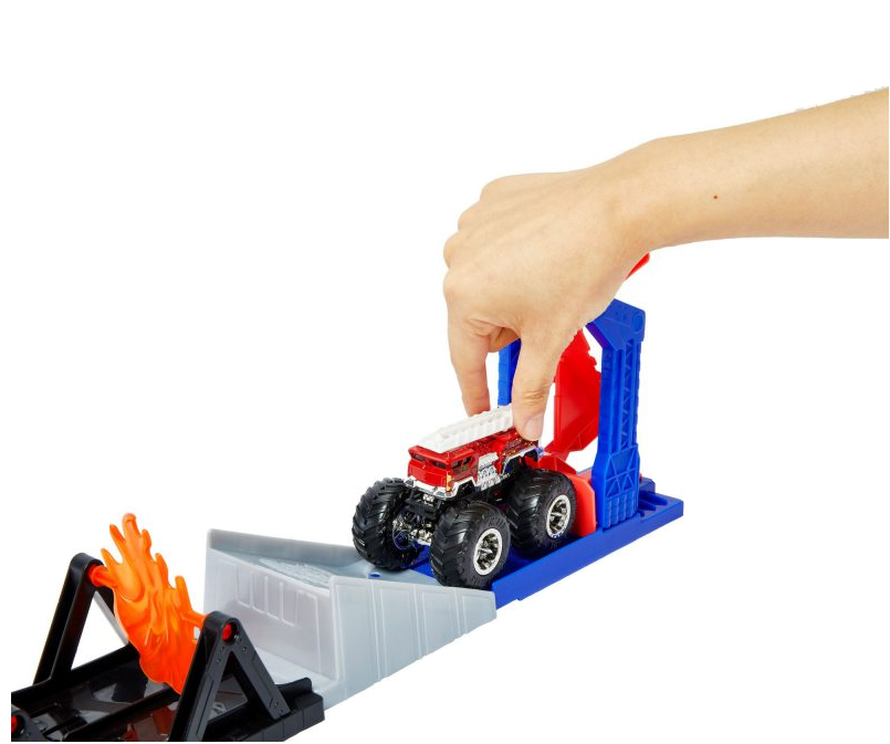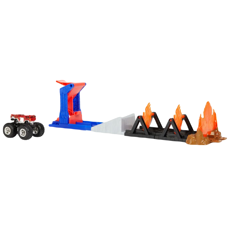 Czas na wielką przygodę z nowymi wyjątkowymi zestawami Hot Wheels Monster Track, które utrzymują w napięciu akcję i kraksy na wysokich obrotach. Ćwicz swoje umiejętności bohaterskimi Monster Truckami! Wystrzel pojazd w skali w sam środek akcji, by wygrać pojedynek z przeciwnikiem. Pokonaj potwory takie jak tygrys szablozębny czy ogromna ośmiornica, walcz z ogniem! Ruszaj ku przygodzie.